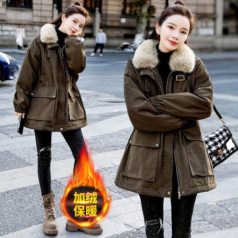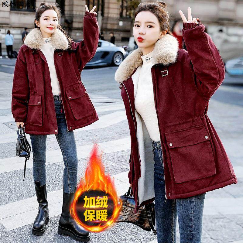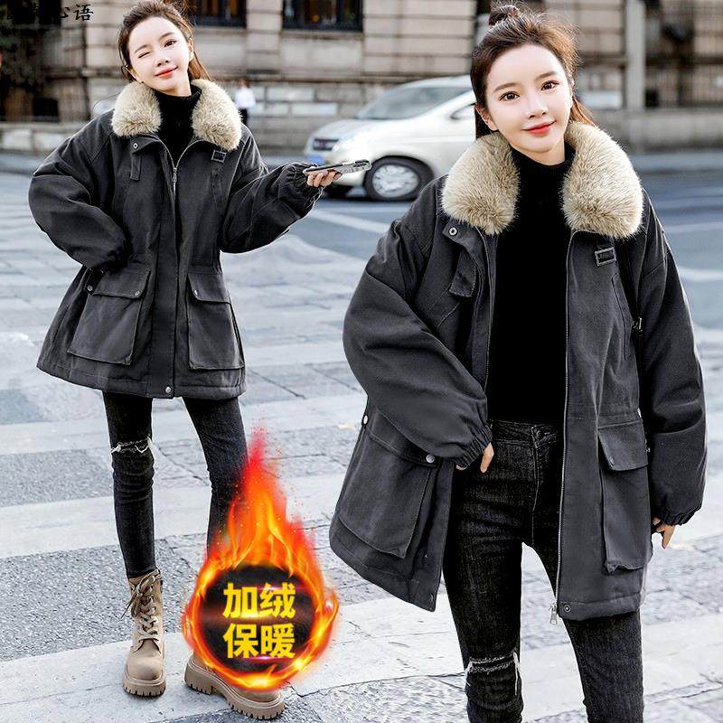 女士派克服冬季2023新款大码胖mm中长款加绒加厚棉衣棉服女款外套