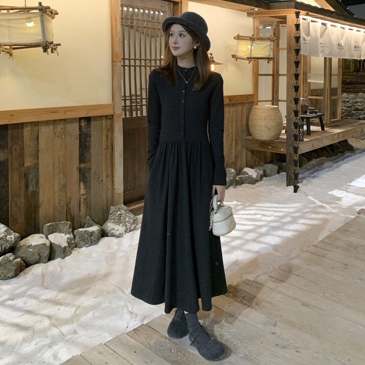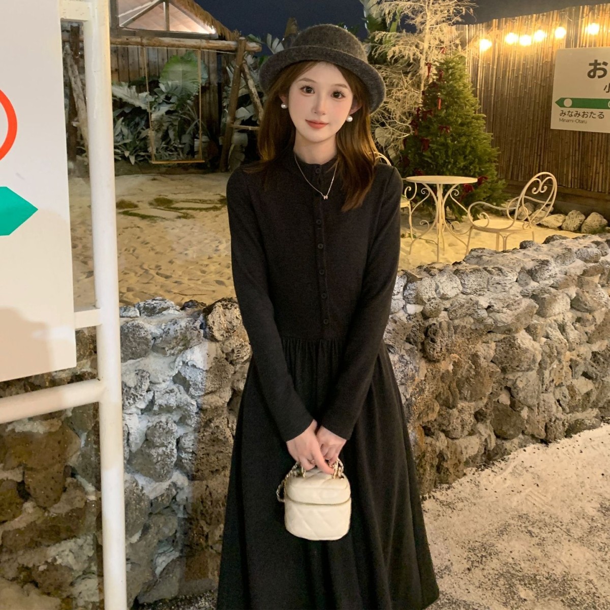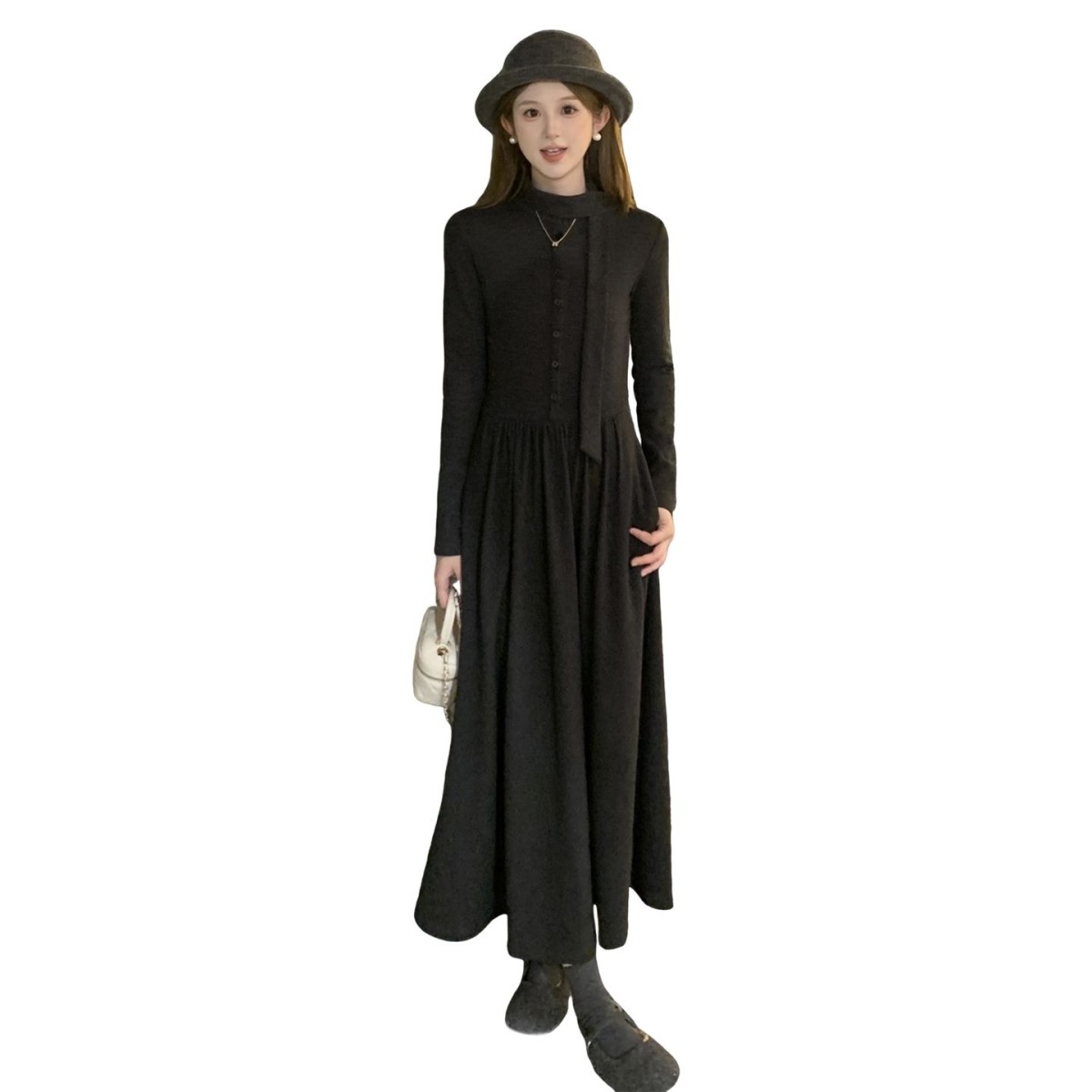 巨好看灰色针织打底内搭连衣裙子女秋冬季2025新款配大衣法式长裙