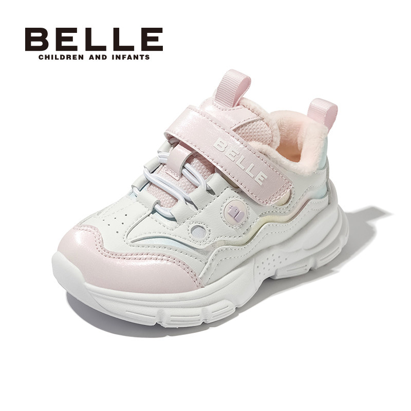 百丽童鞋冬季加绒保暖老爹鞋男女童儿童运动鞋时尚百搭软底休闲鞋
