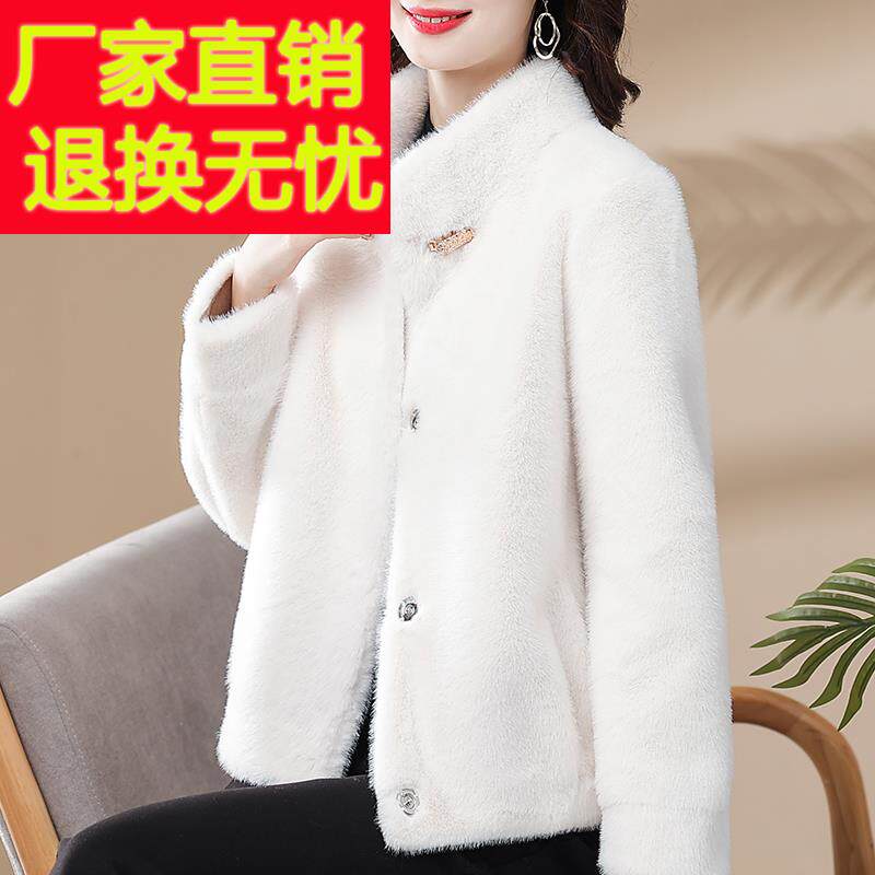 小个子妈妈秋冬装皮草外套时尚中老年女士新款水貂绒皮毛一体大衣