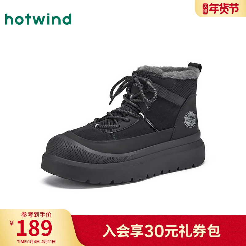 热风男鞋2025年冬季新款男士时尚休闲靴保暖增高舒适黑色雪地靴子
