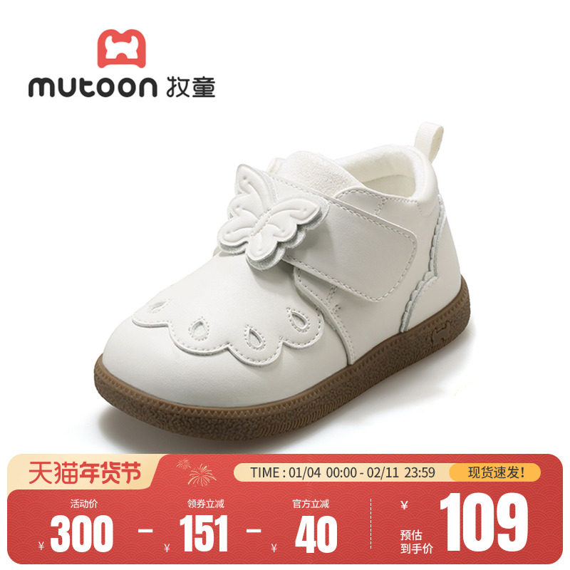 牧童童鞋公主小皮靴女童2025冬季新款软底小蝴蝶洋气加绒保暖棉靴