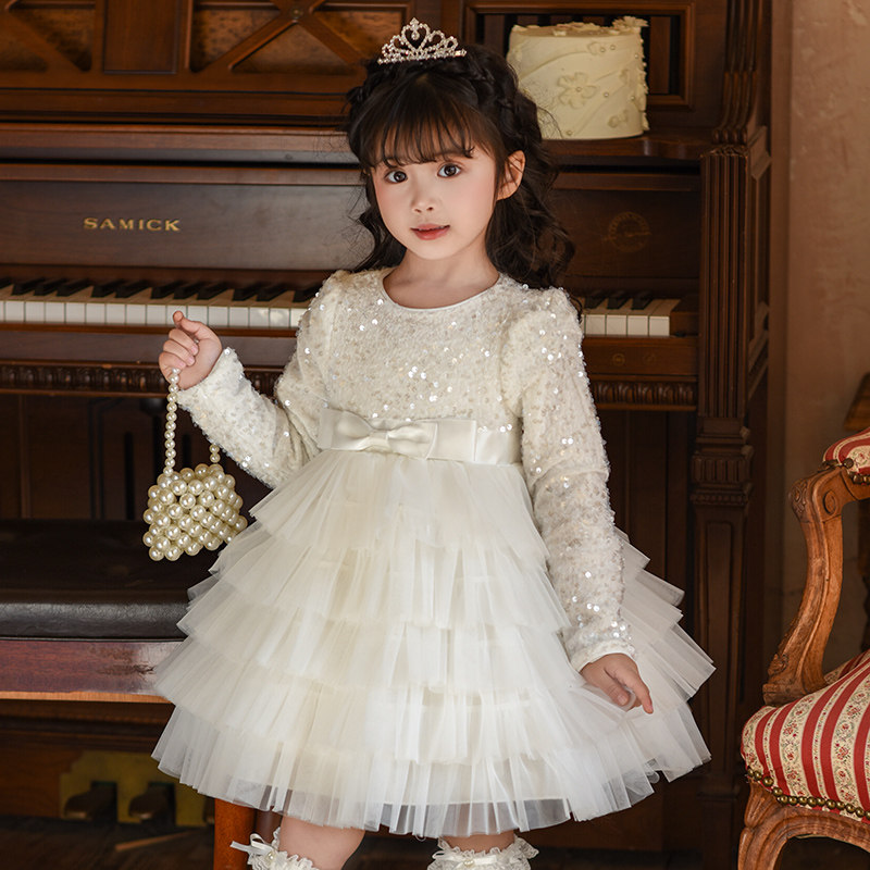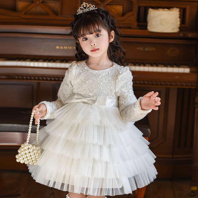 女童公主裙礼服2026新款洋气冬装花童婚礼女孩连衣裙儿童生日裙子
