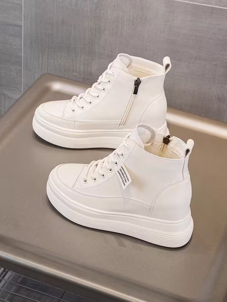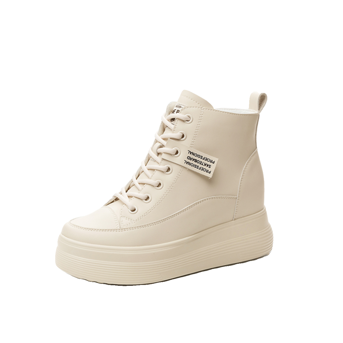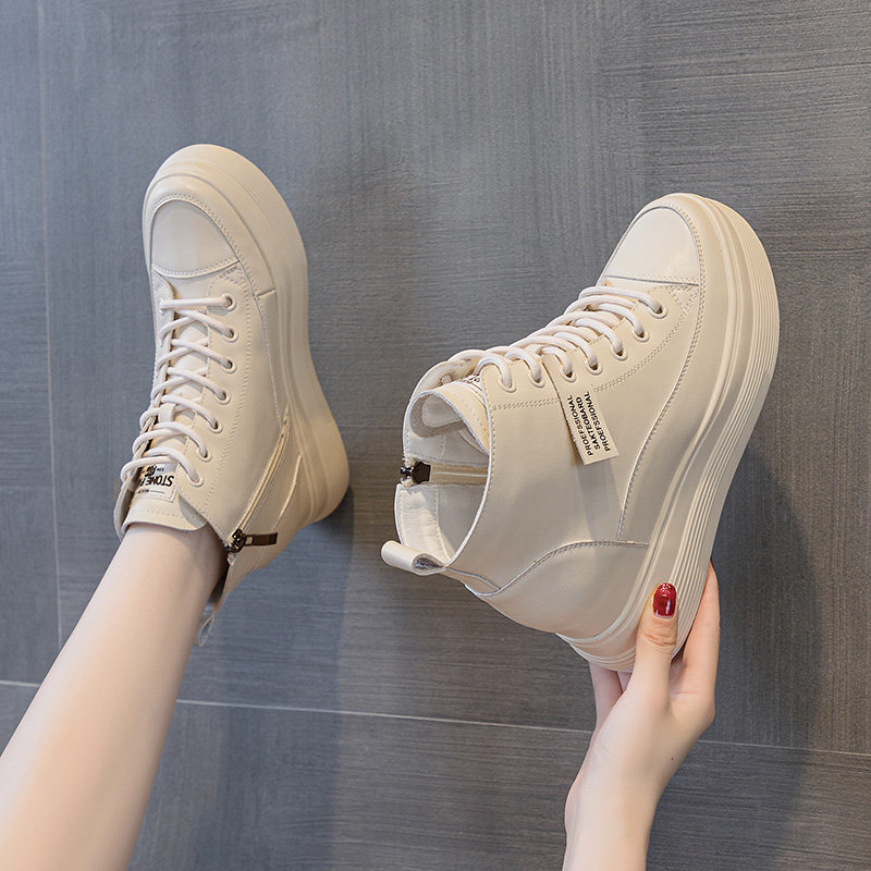 米色8cm小个子内增高马丁靴女真皮2025秋冬新款厚底韩版休闲短靴