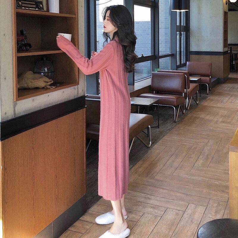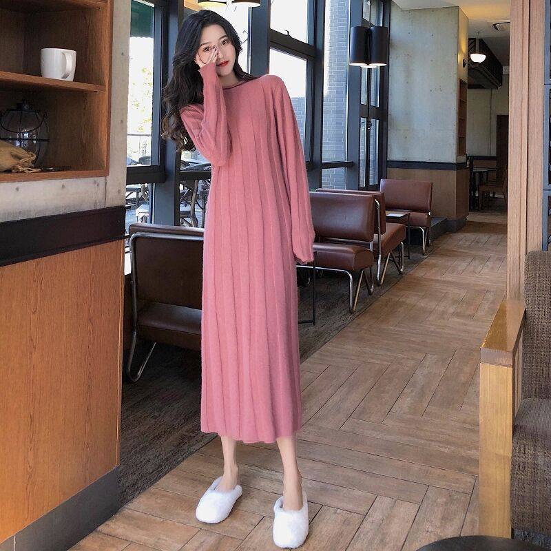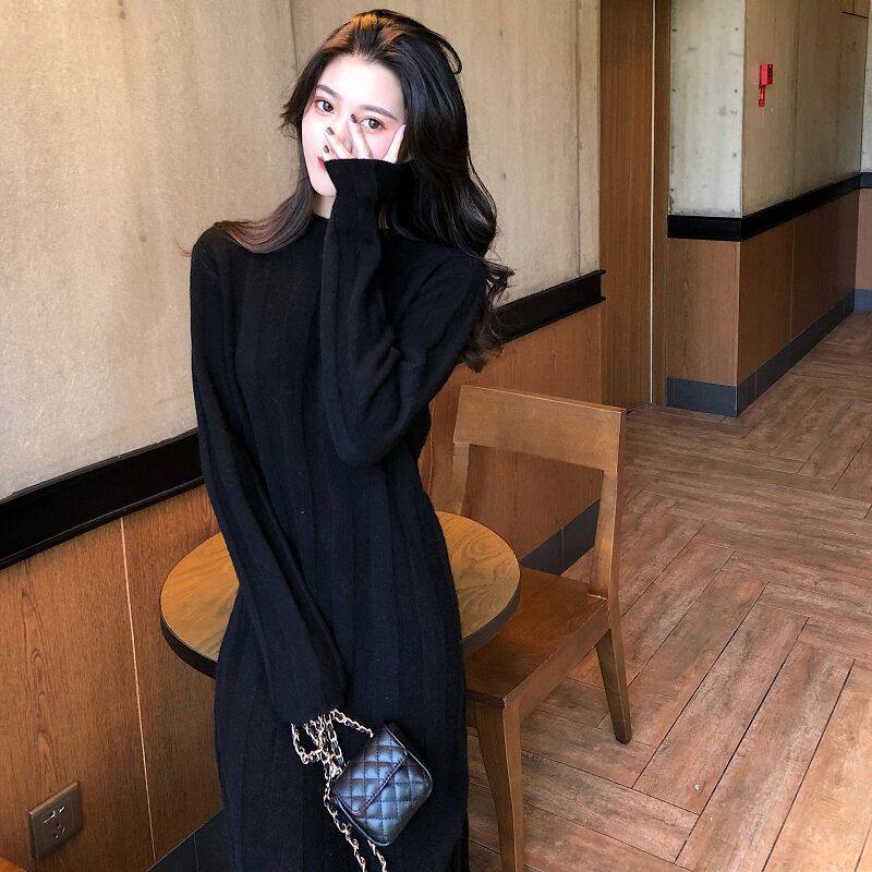 白色毛衣裙秋冬连衣裙女加厚针织打底裙收腰显瘦配大衣内搭长子裙