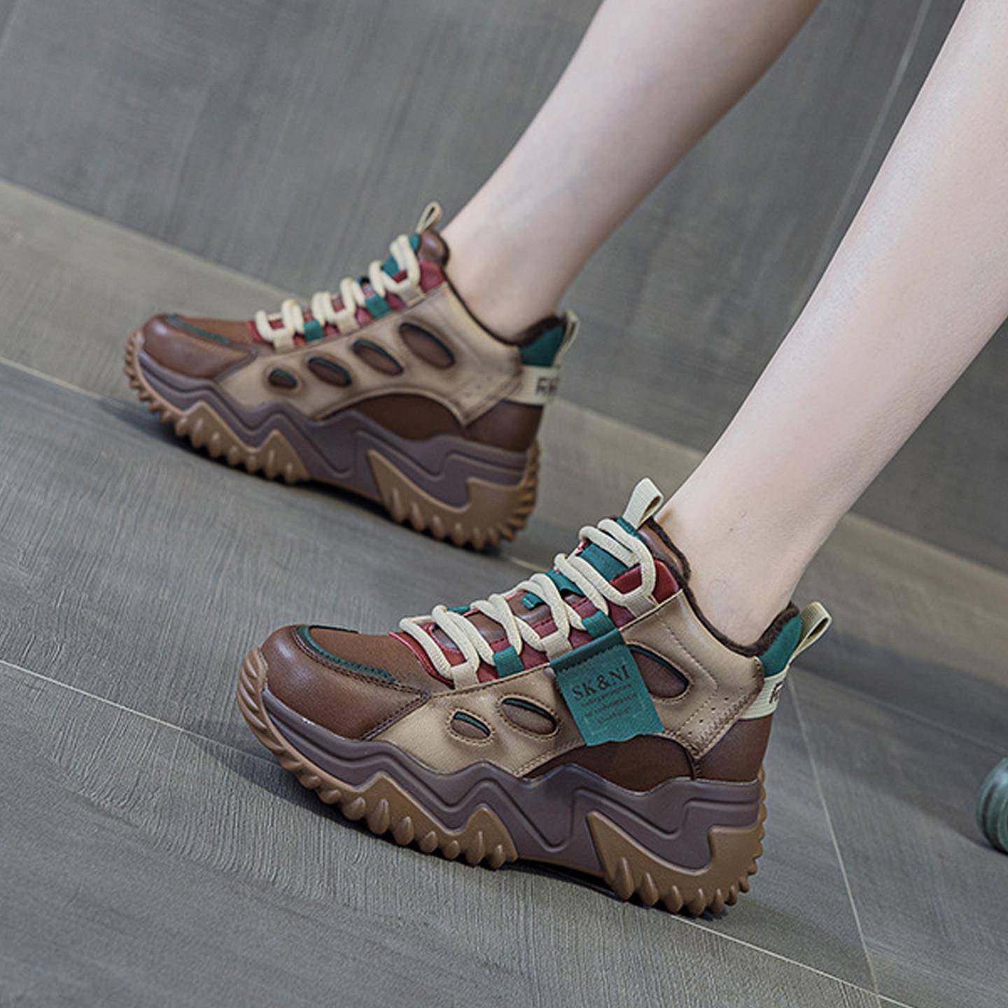 厚底内增高女鞋2025新款隐形冬季加绒小个子不累脚休闲运动老爹鞋