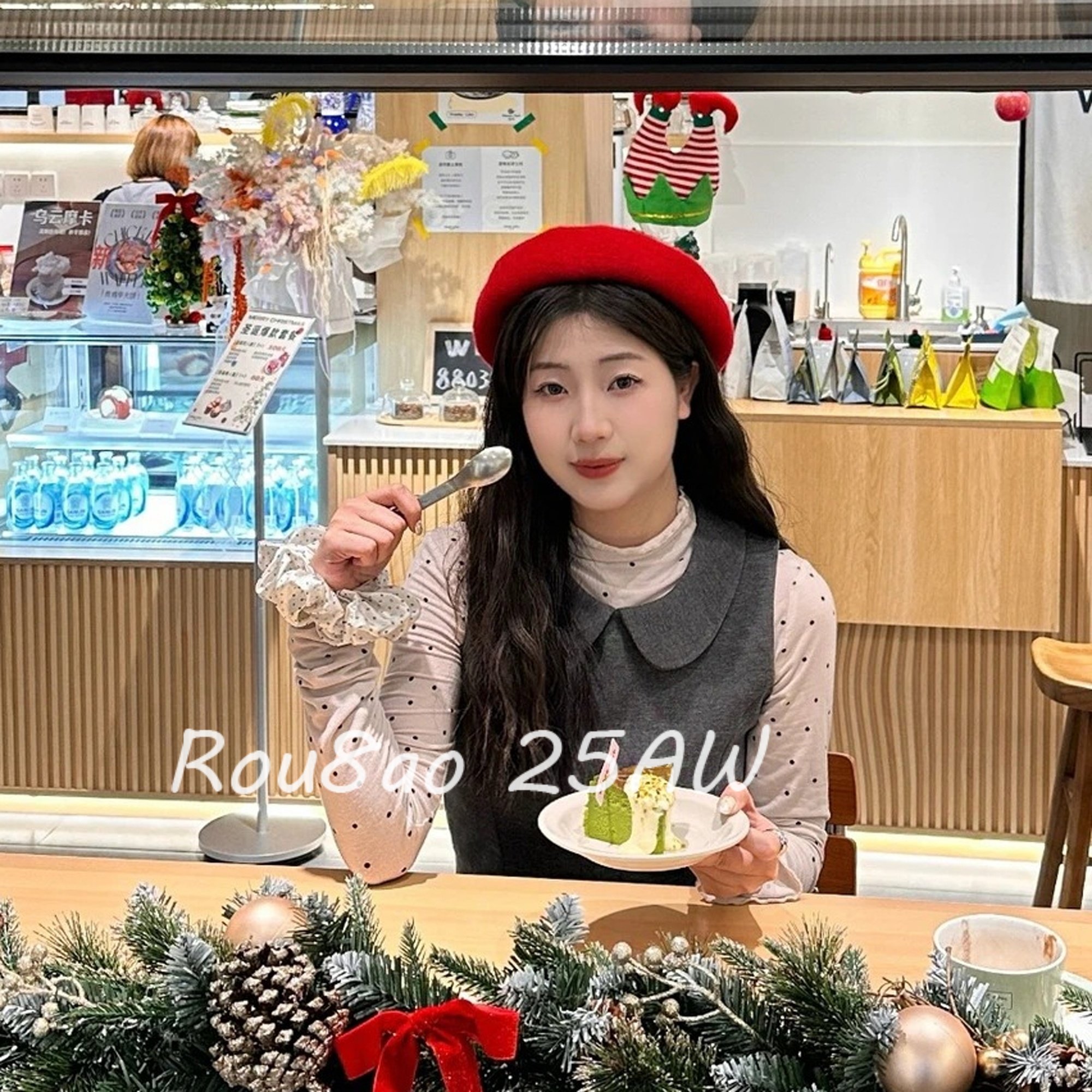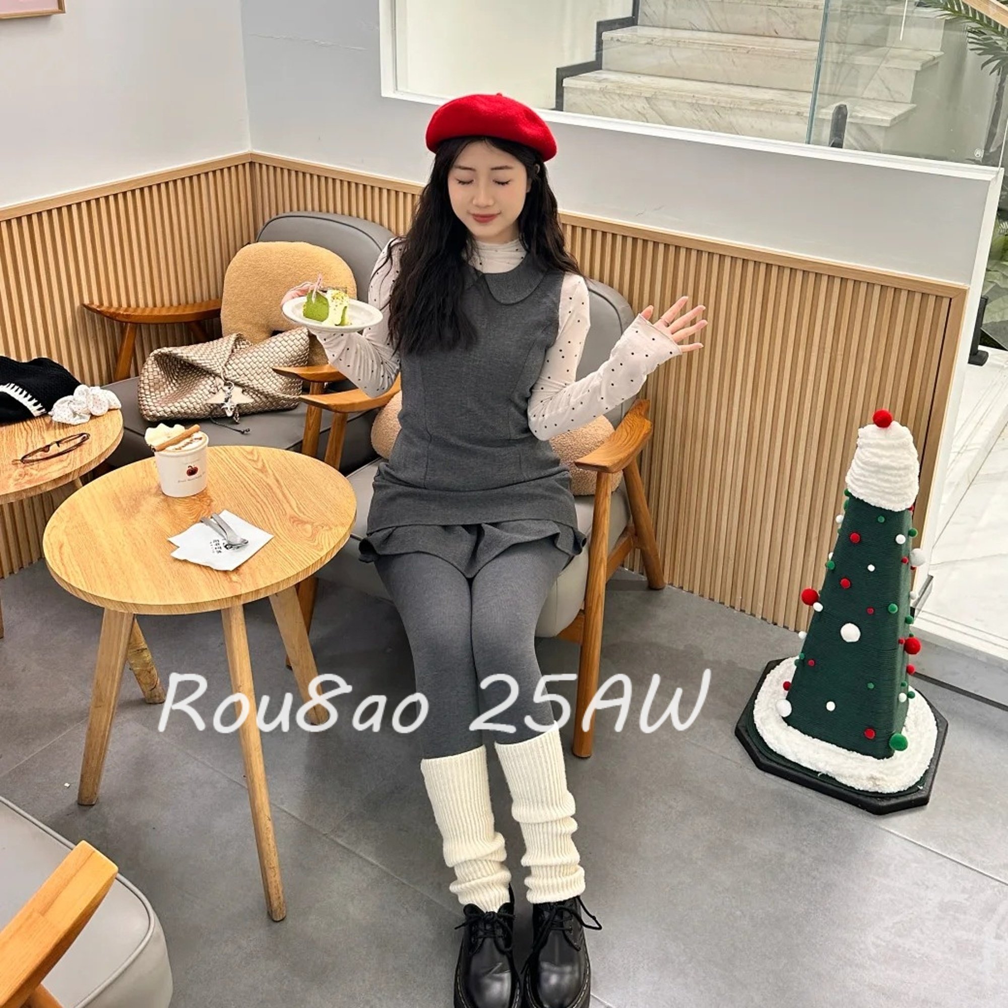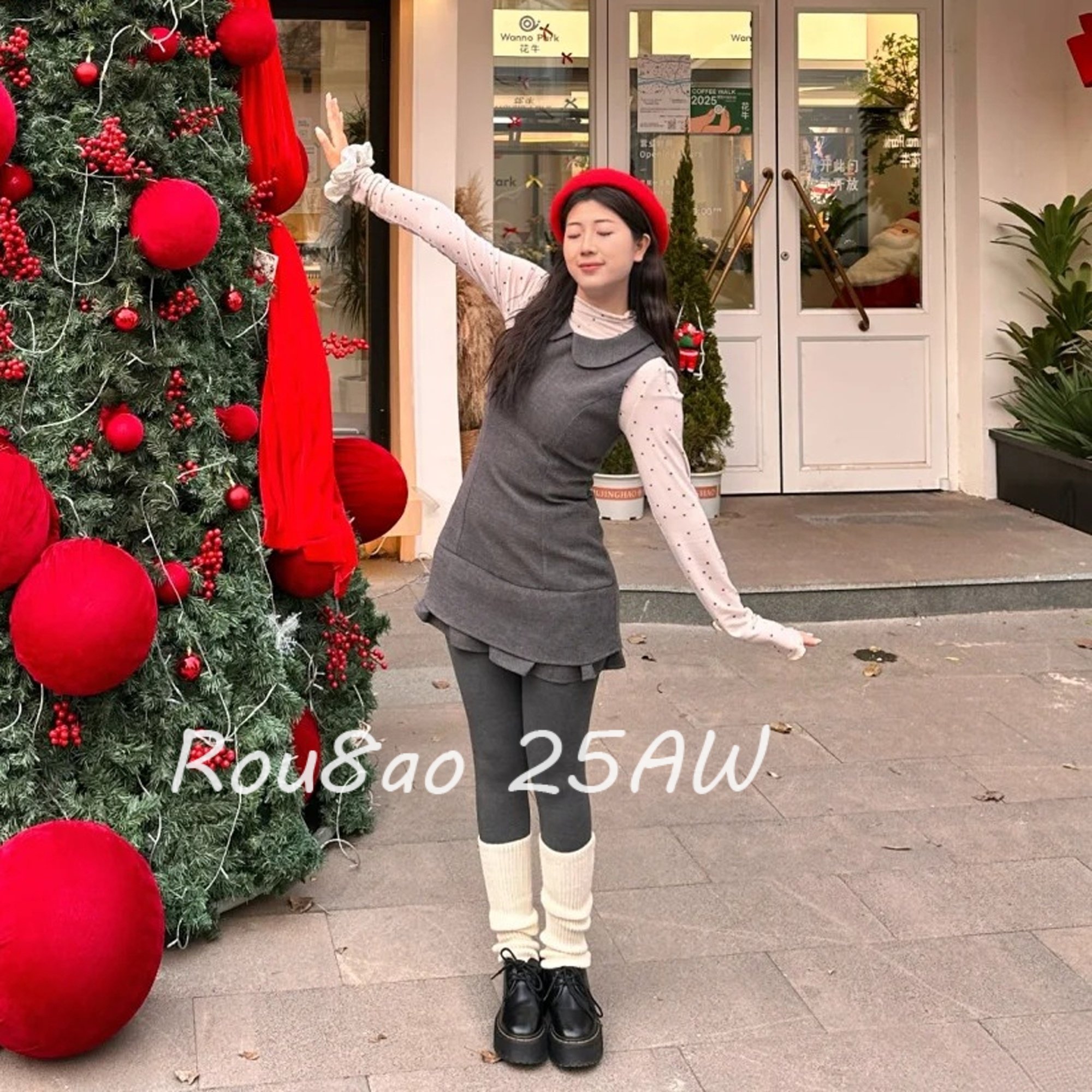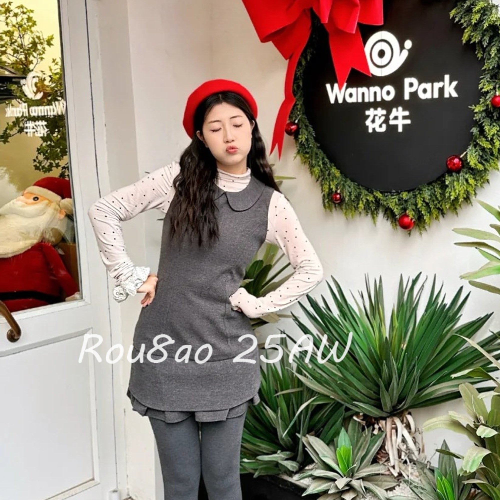 Rou8ao微胖大码女装韩系高级气质收腰短款连衣裙波点打底衫两件套