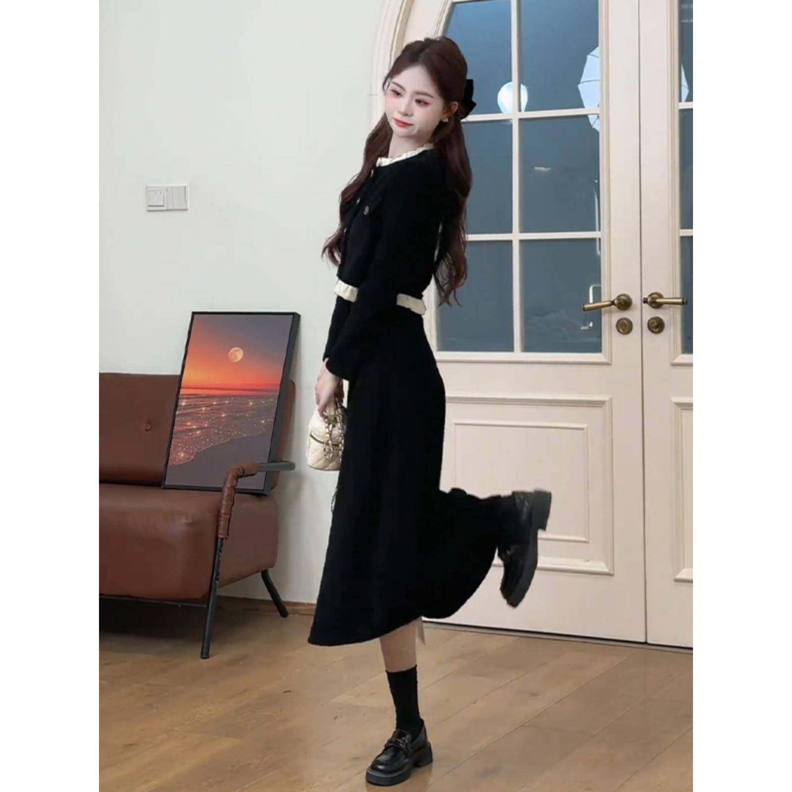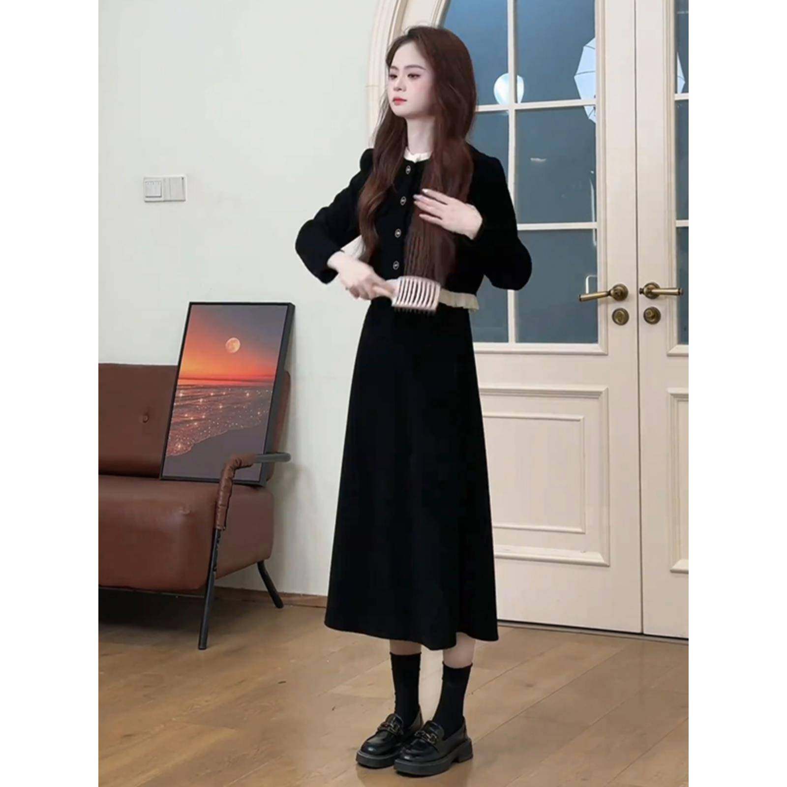 连衣裙子2025年新款女早春季小个子高级感黑色长裙套装