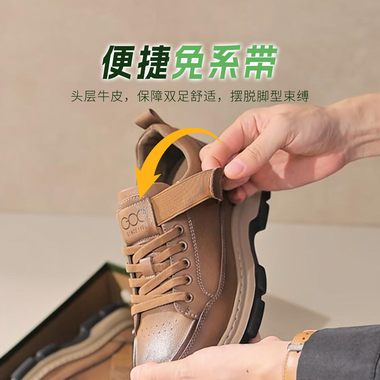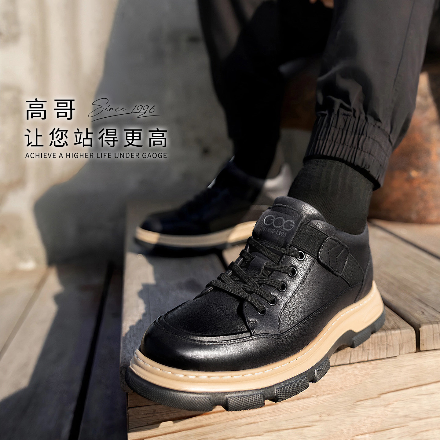 高哥增高工装鞋男真皮运动男鞋冬季厚底鞋轻便隐形内增高休闲鞋