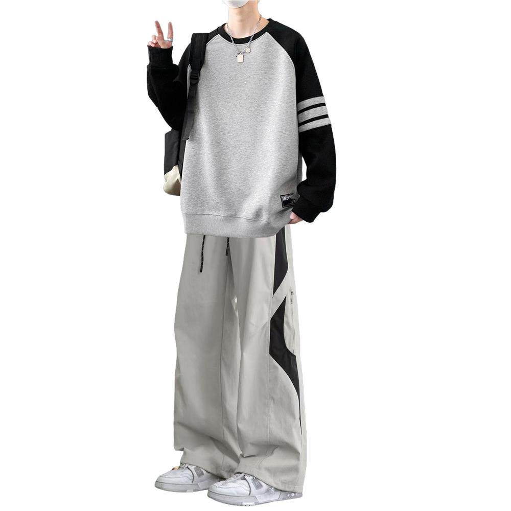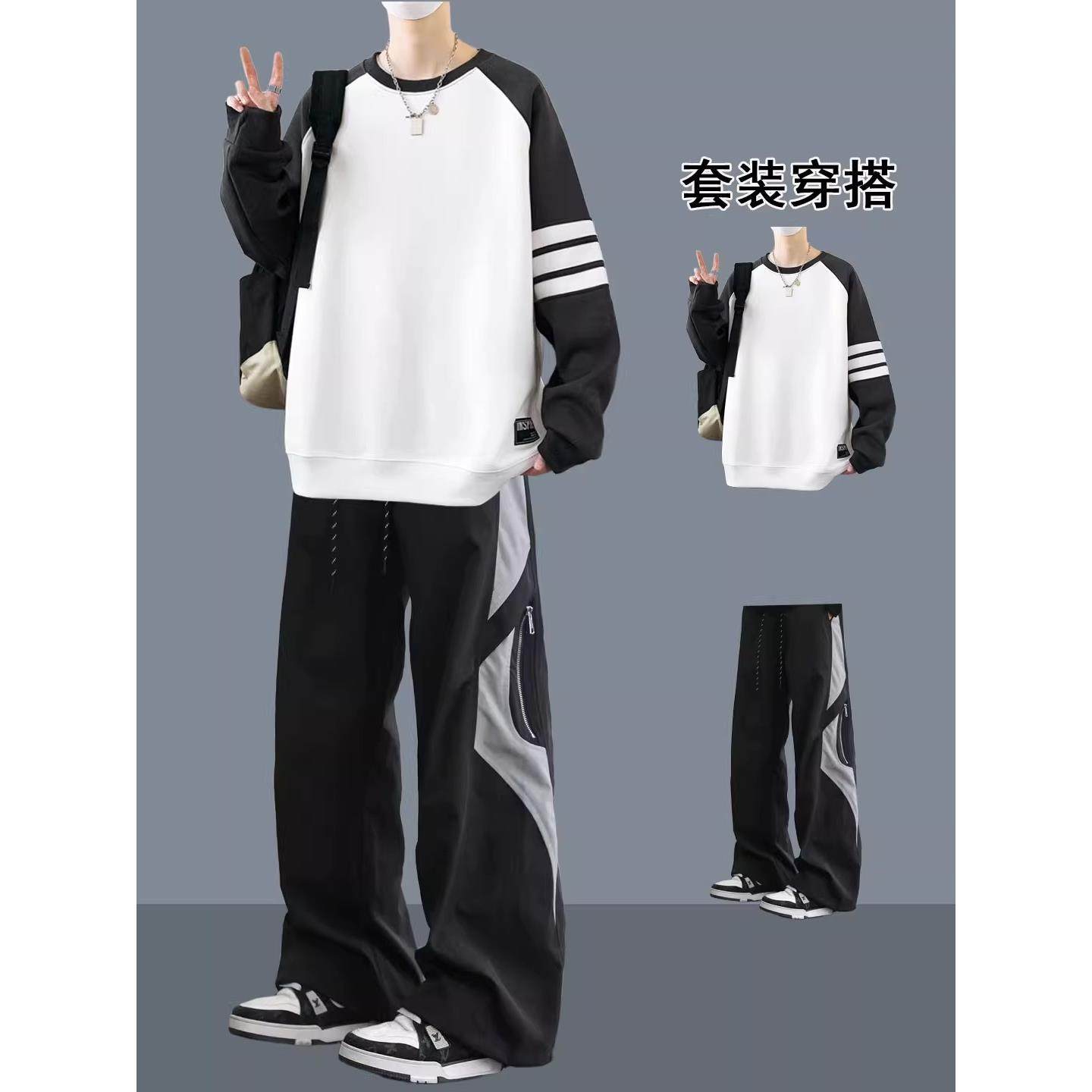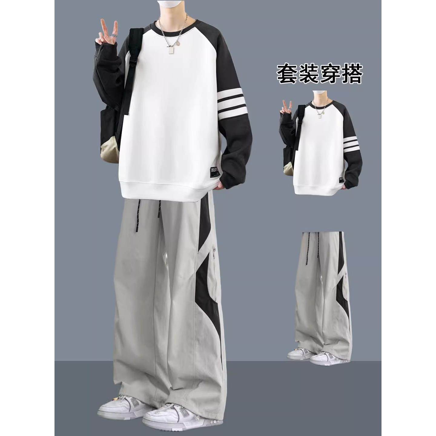 拼接卫衣套装男款春秋季重磅青少年潮流帅气穿搭时髦长袖衣服男装