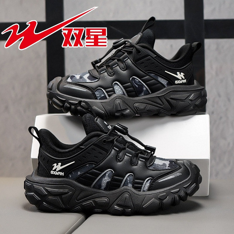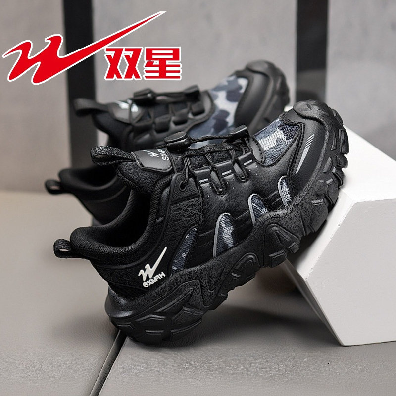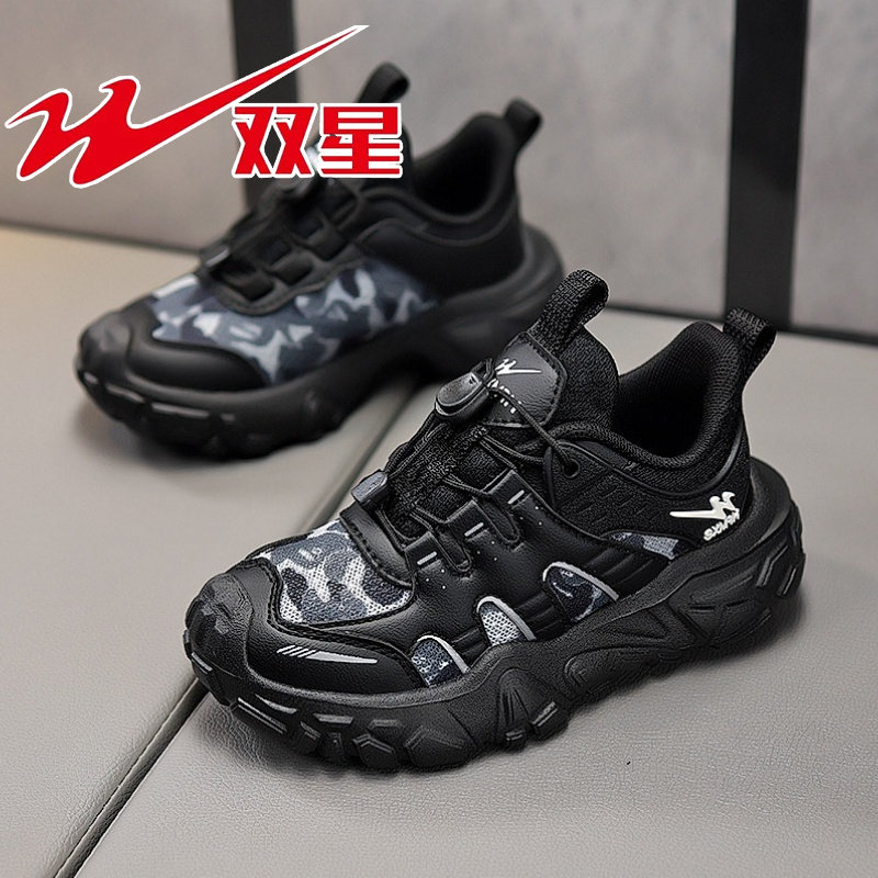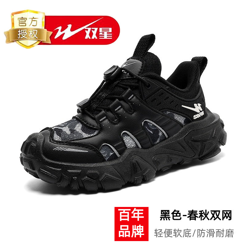双星男童鞋子2026春秋新款网面透气儿童黑色运动鞋女童休闲跑步鞋