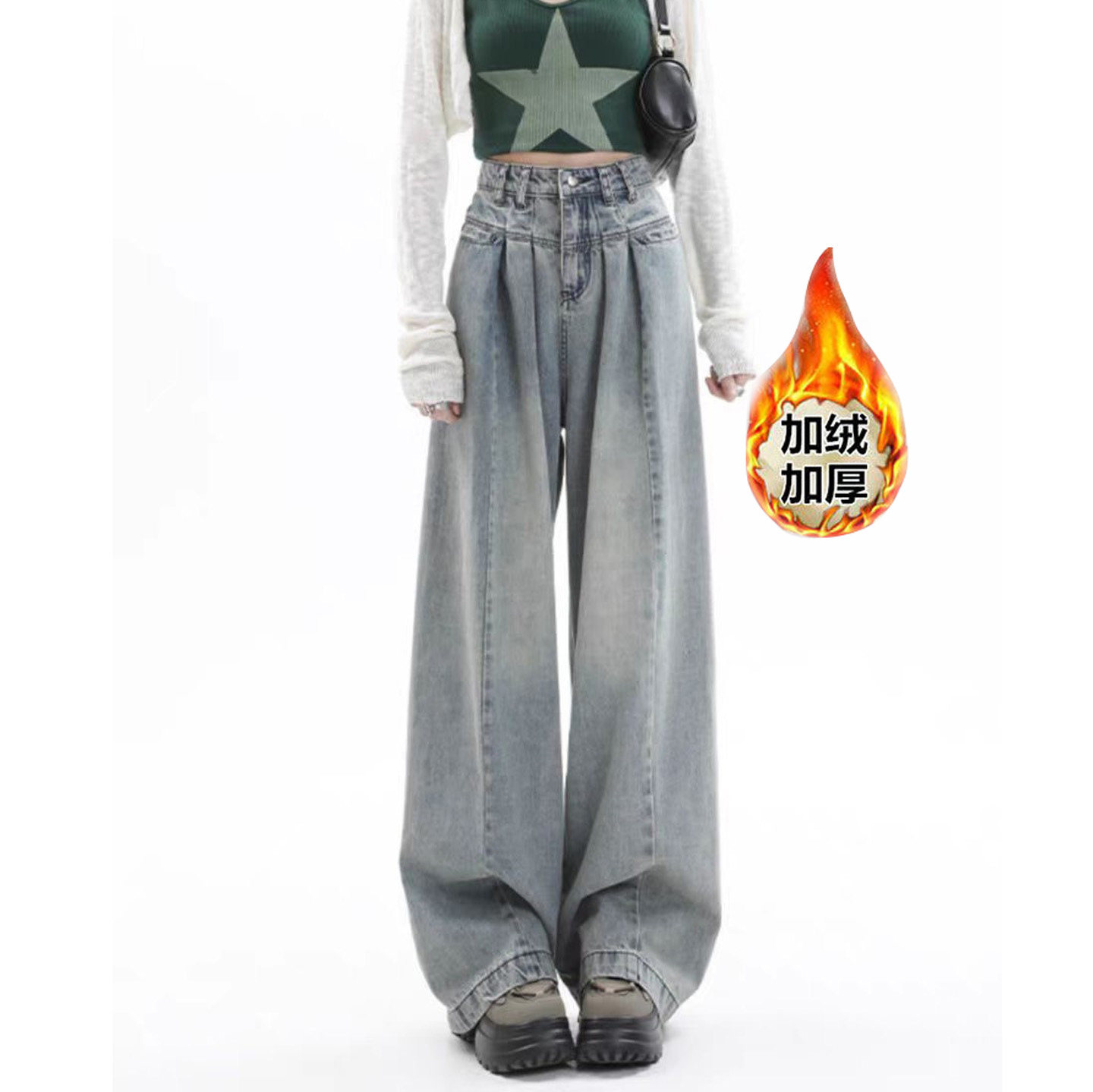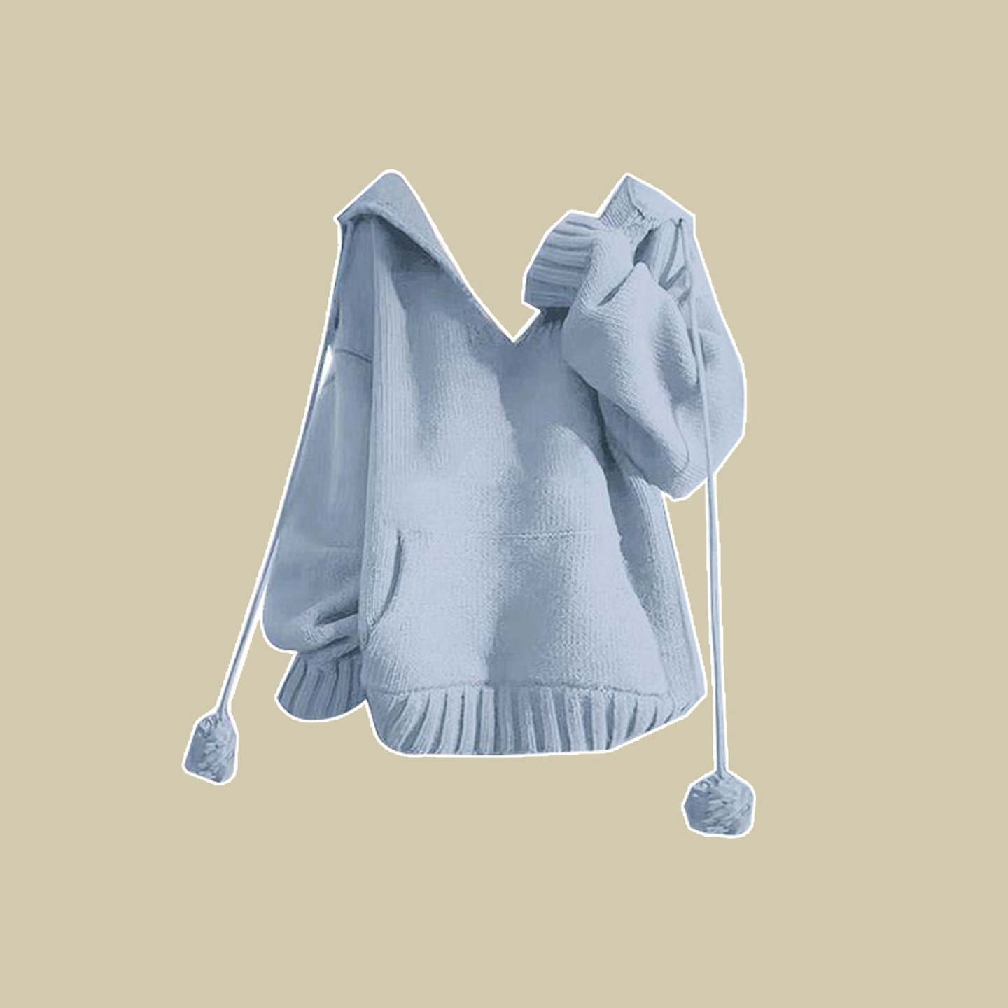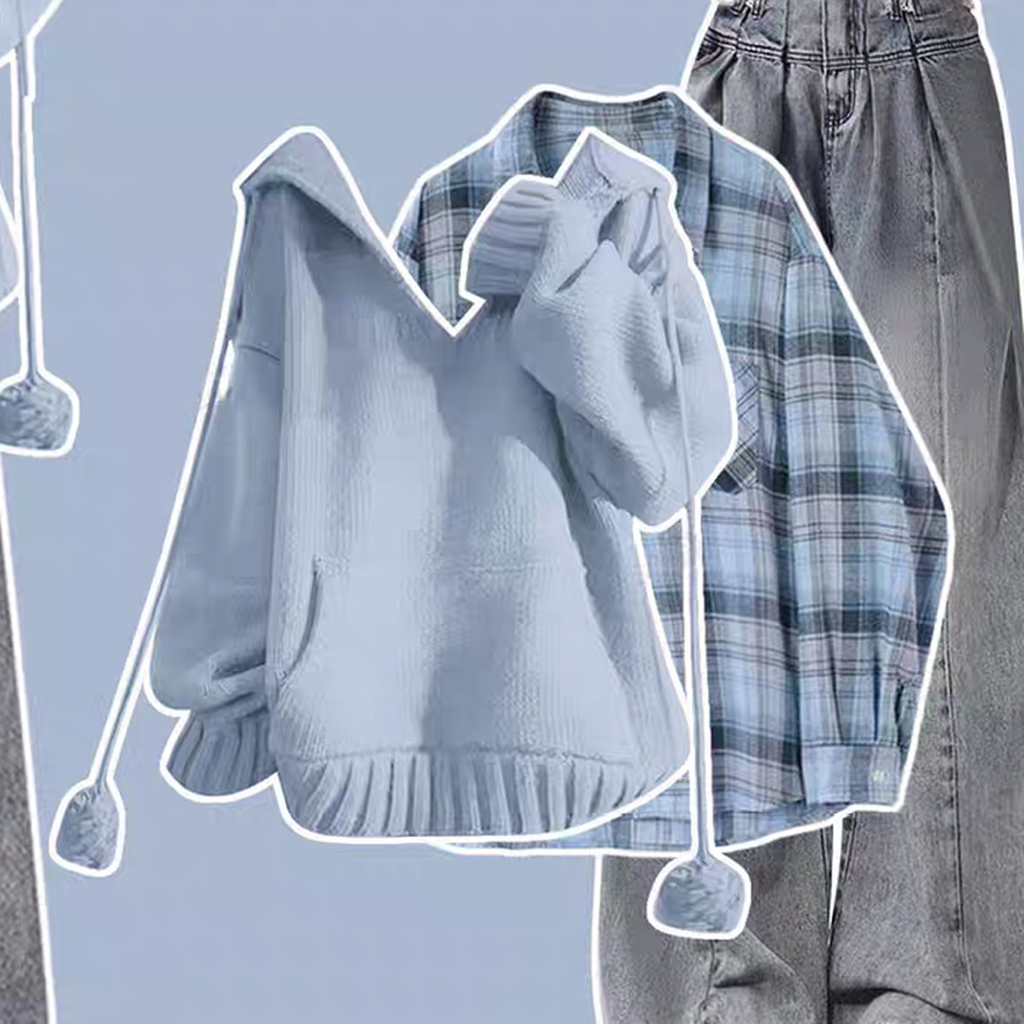 秋冬大童多巴胺穿搭减龄时尚套装蓝色毛衣+衬衫+炸街牛仔裤三件套