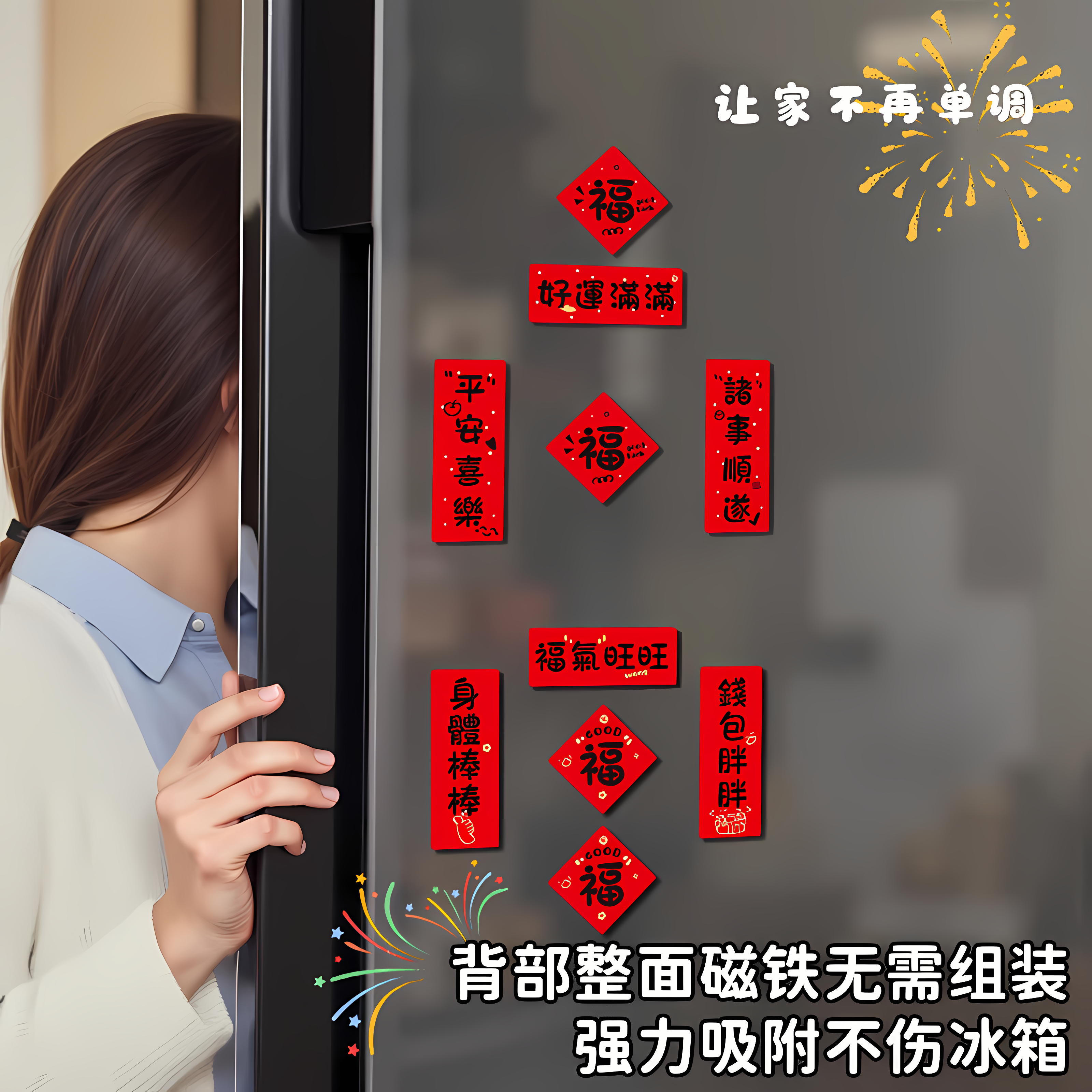 磁吸冰箱贴小对联迷你春节入户门创意个性小尺寸装饰氛围布置场景