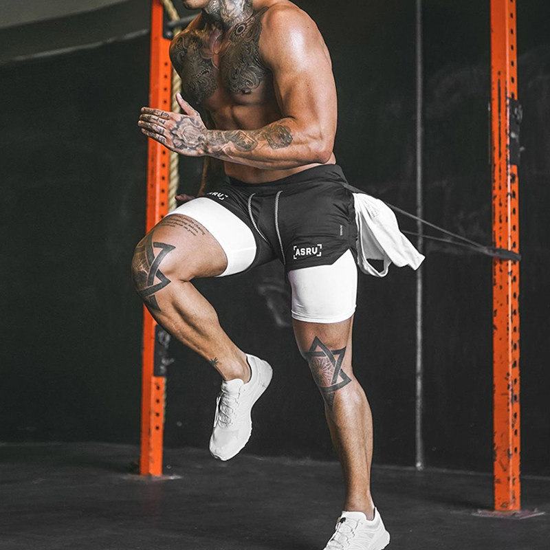 美式ASRV双层运动短裤男士弹力透气健身拳击跑步蓝球综合训练裤