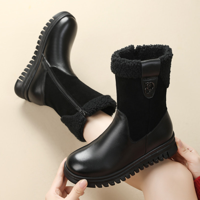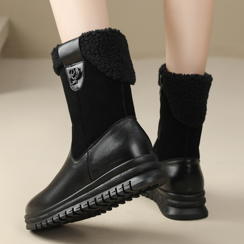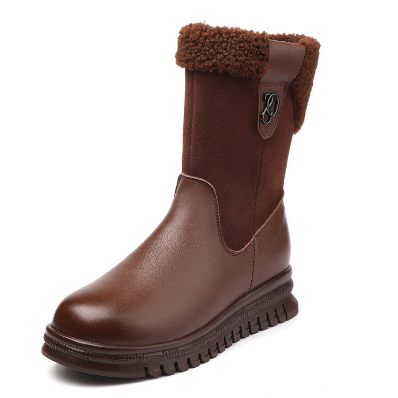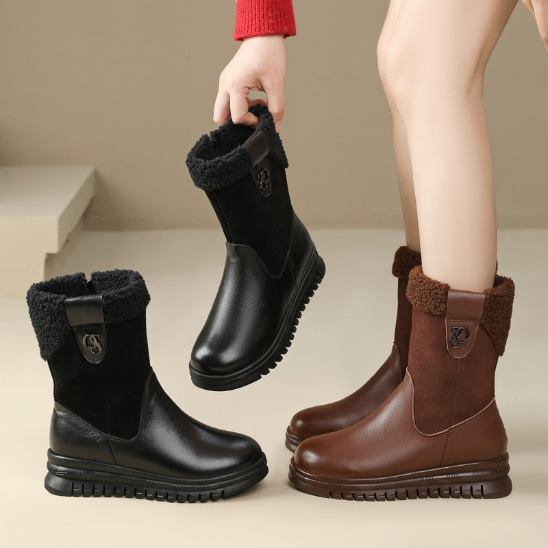 真皮厚底雪地靴女加绒加厚保暖防寒妈妈款棉靴坡跟软底防滑中筒靴
