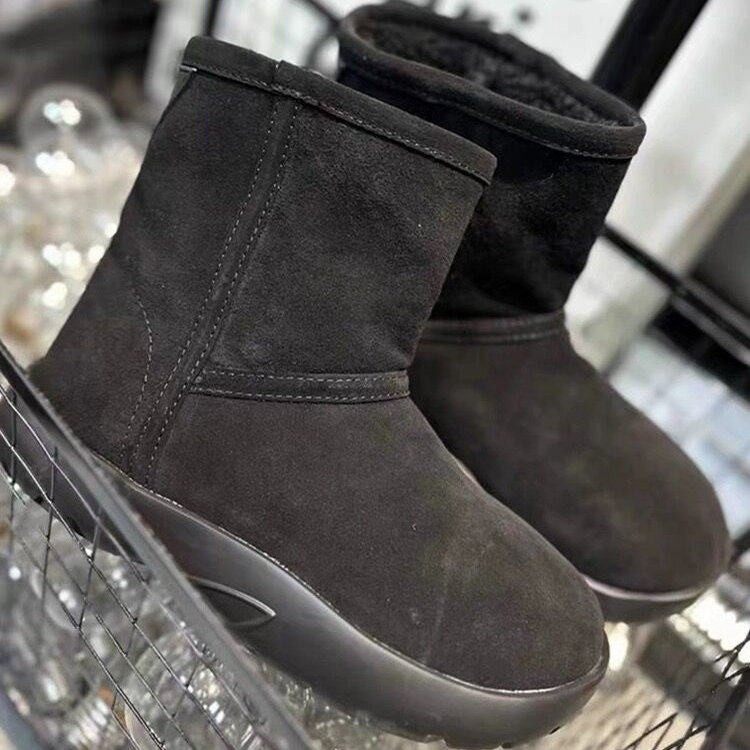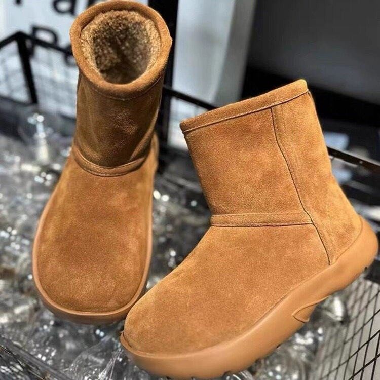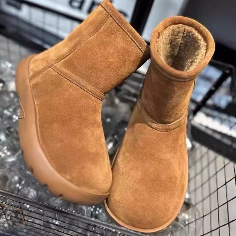 欧洲站2025冬季新款真皮厚底雪地靴女加绒加厚棉靴羊皮毛一体短靴