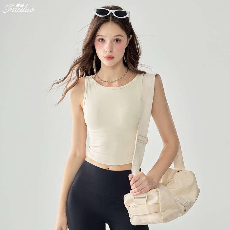 拍朵带胸垫瑜伽背心女外穿跑步运动内衣显瘦普拉提训练上衣文胸新