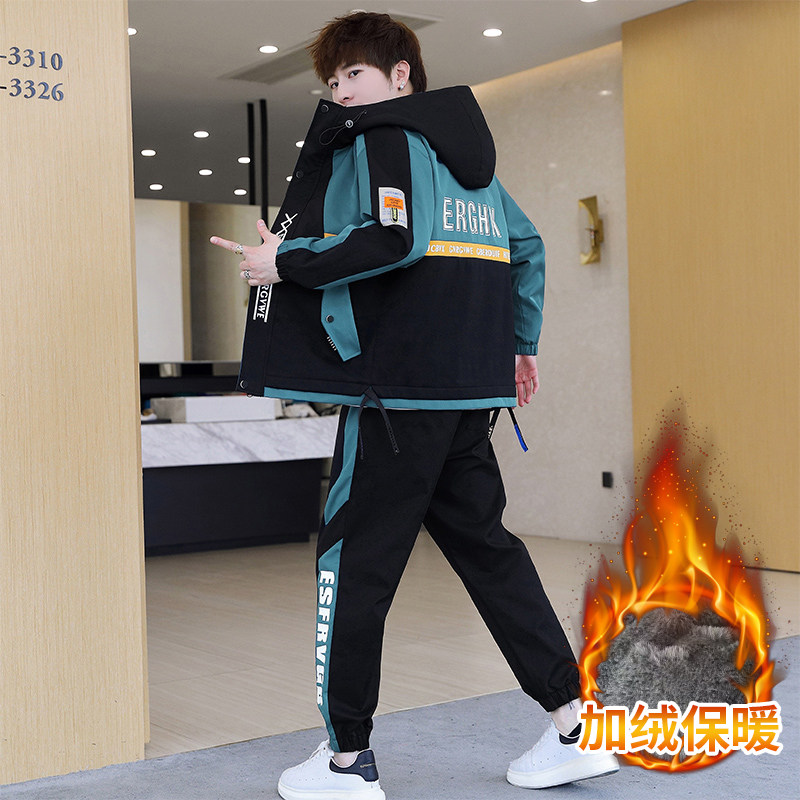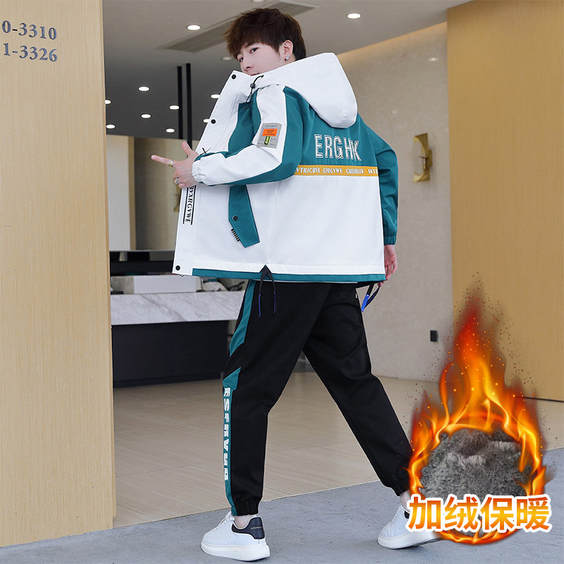 13初中学生外套加绒加厚棉衣12岁15男孩帅气秋冬装14大童夹克套装