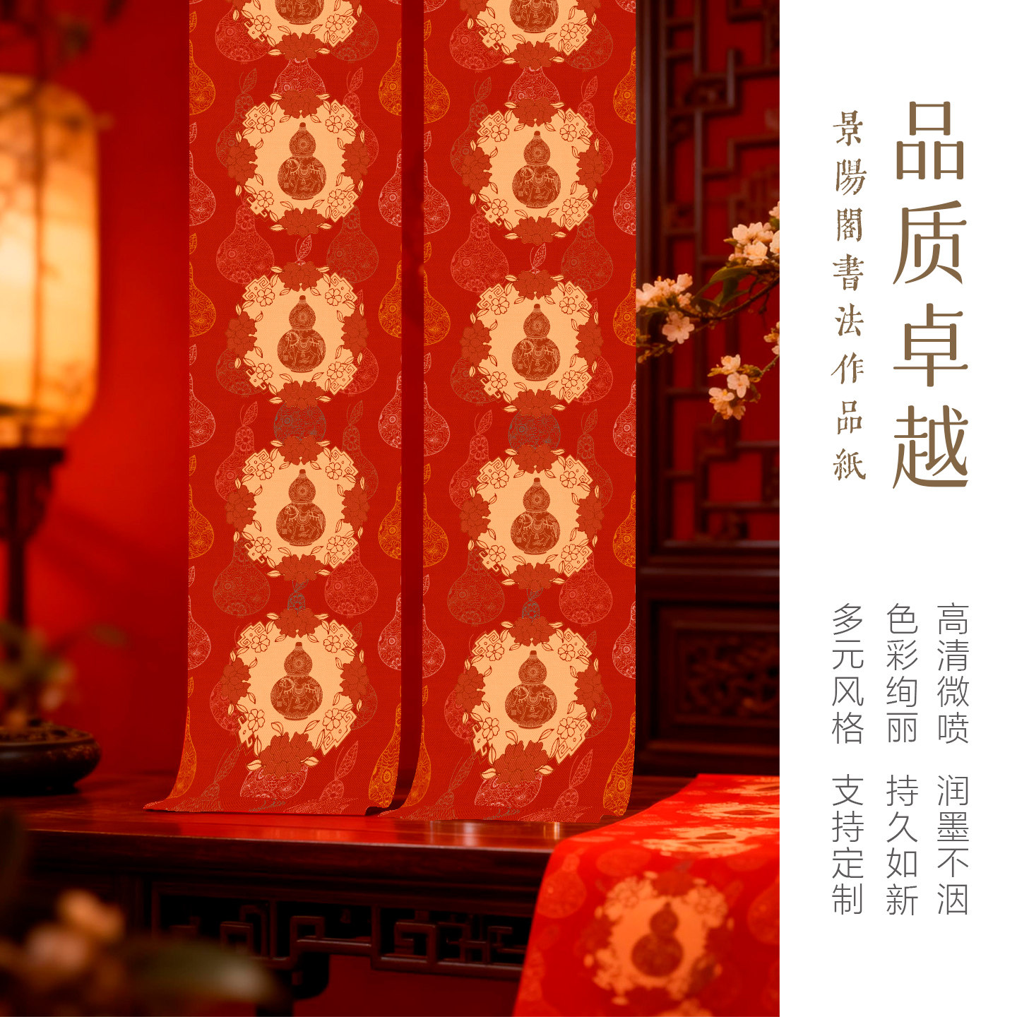 景阳阁2026年新款微喷春联马年对联纸马上有福新年书法作品纸加厚空白自写春联纸福字斗方红色门贴创意对联纸