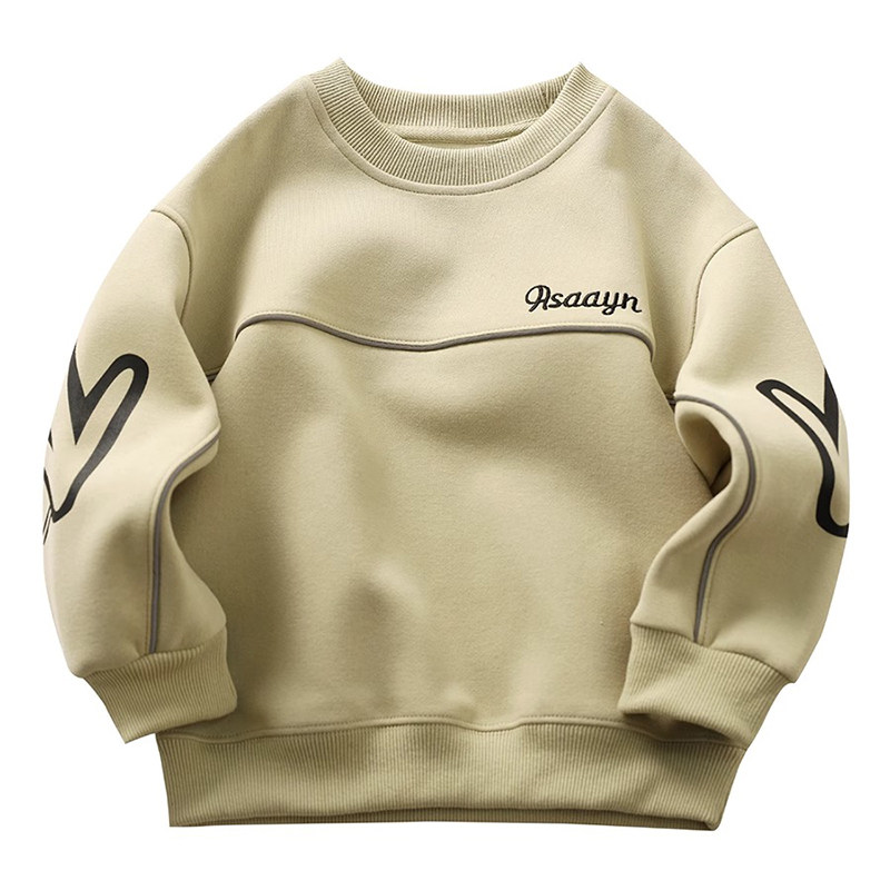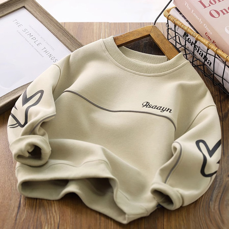 男童一体绒卫衣冬季加绒加厚儿童圆领运动上衣酷帅春秋男孩打底衫