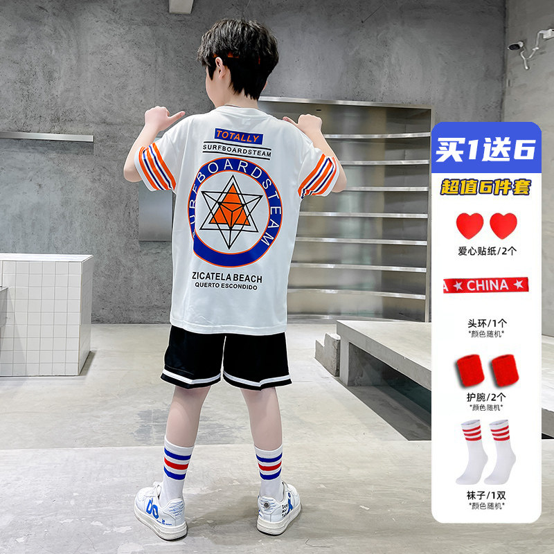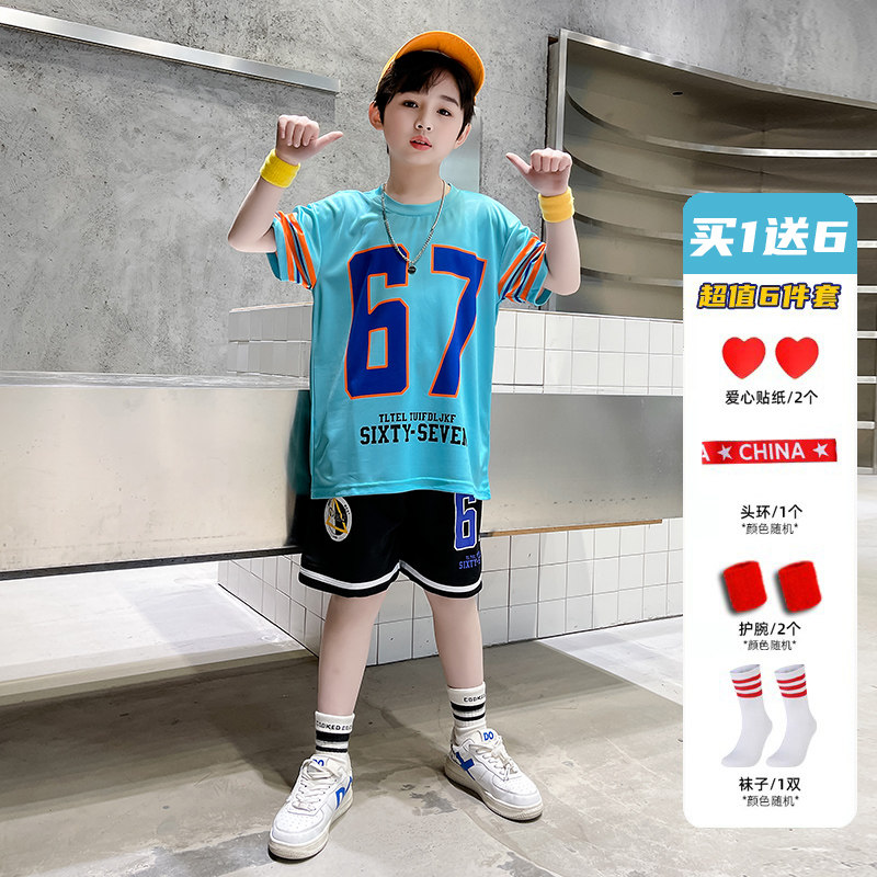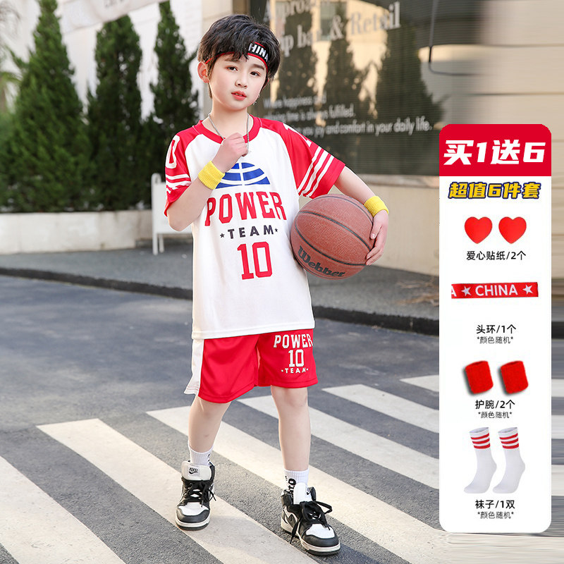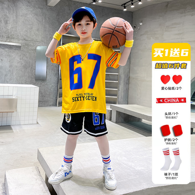 儿童篮球服套装男童夏季短袖运动速干球衣小童幼儿园表演服假两件