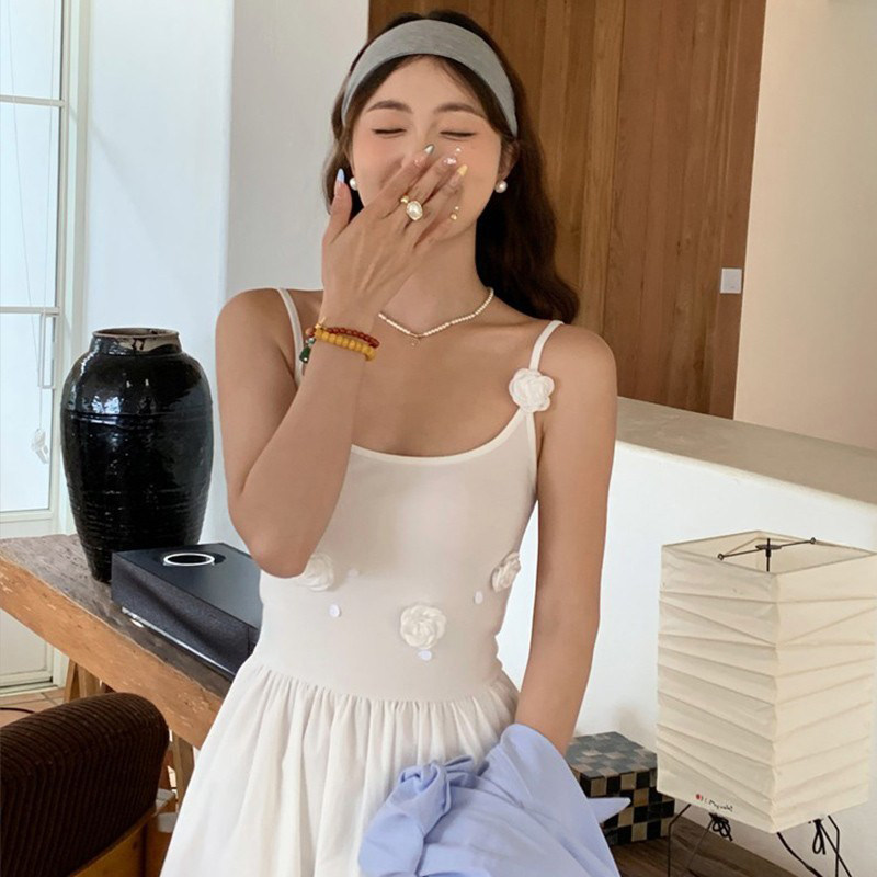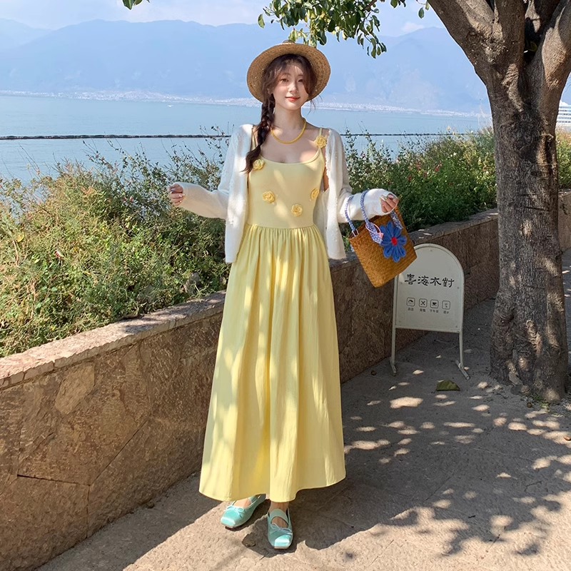 黄色收腰吊带连衣裙女装2025夏季新款海边度假小个子漂亮白色长裙