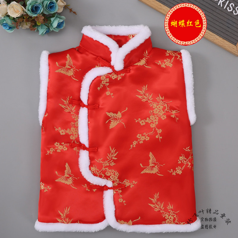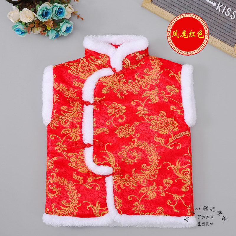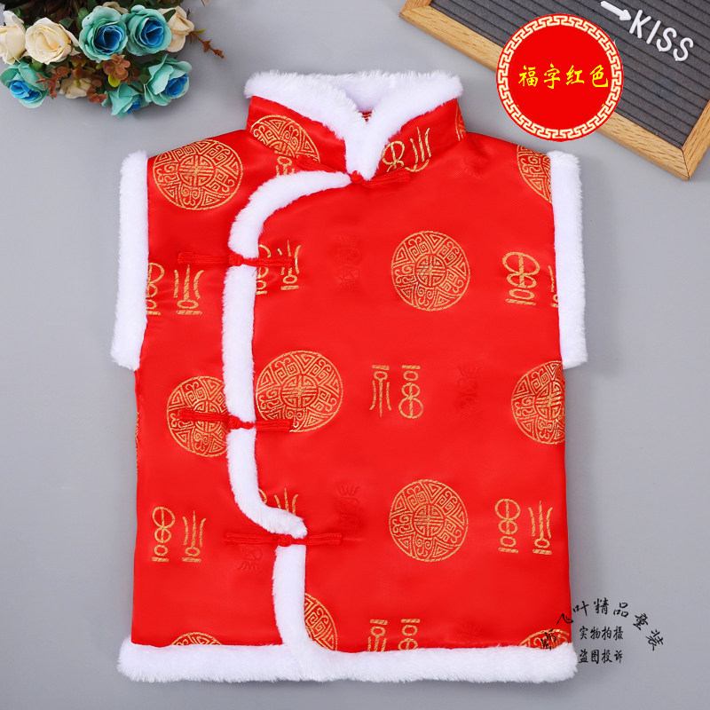 儿童唐装冬季中国风宝宝背心男童马甲新年汉服加棉马甲喜庆拜年服