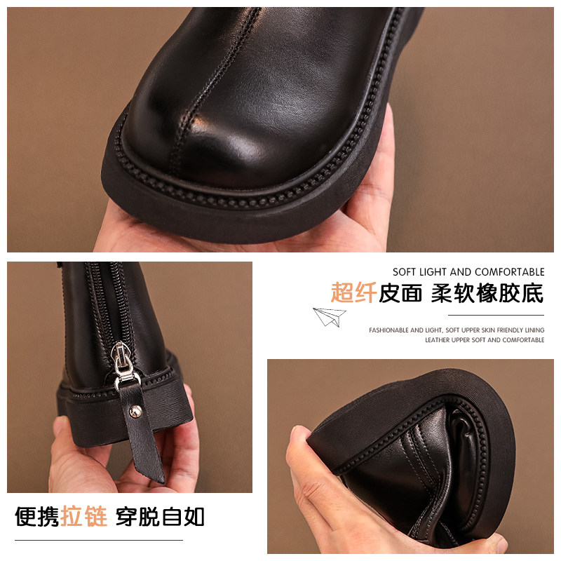 311线报网描述:【加绒保暖】女宝黑色软底小皮靴