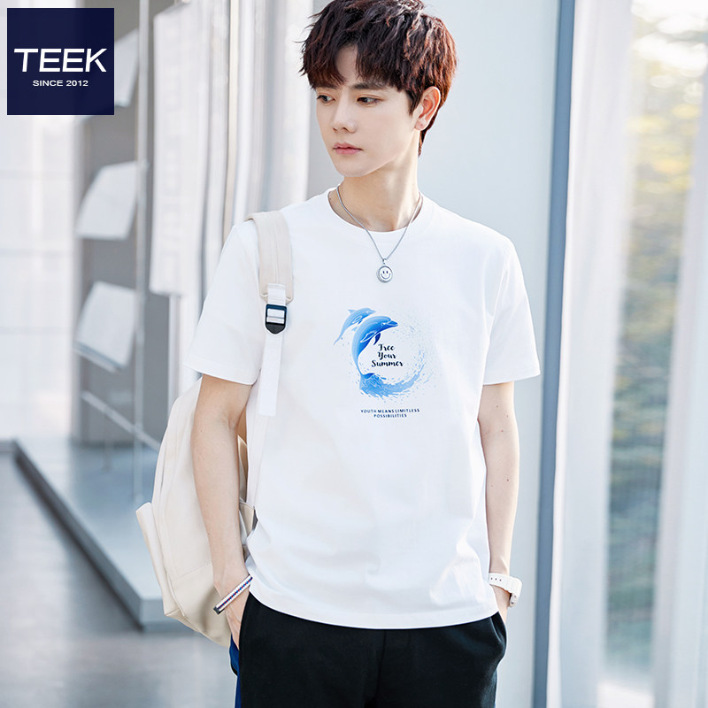 TEEK速干短袖t恤男夏季新款 小众潮流鲸鱼印花大学生百搭冰丝上衣