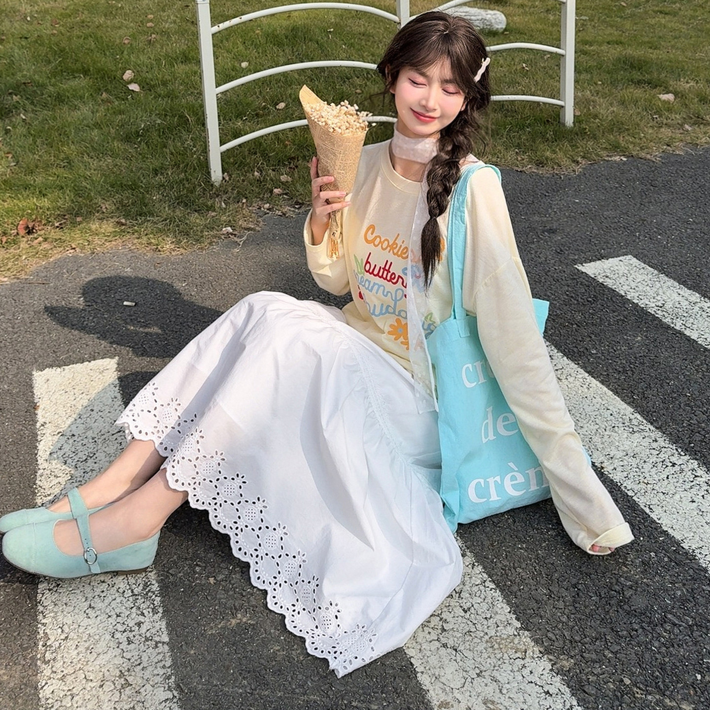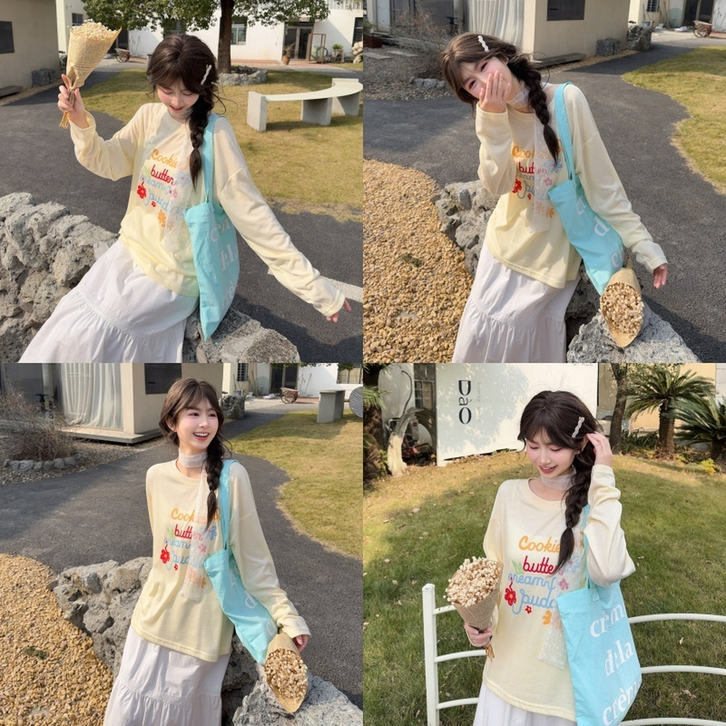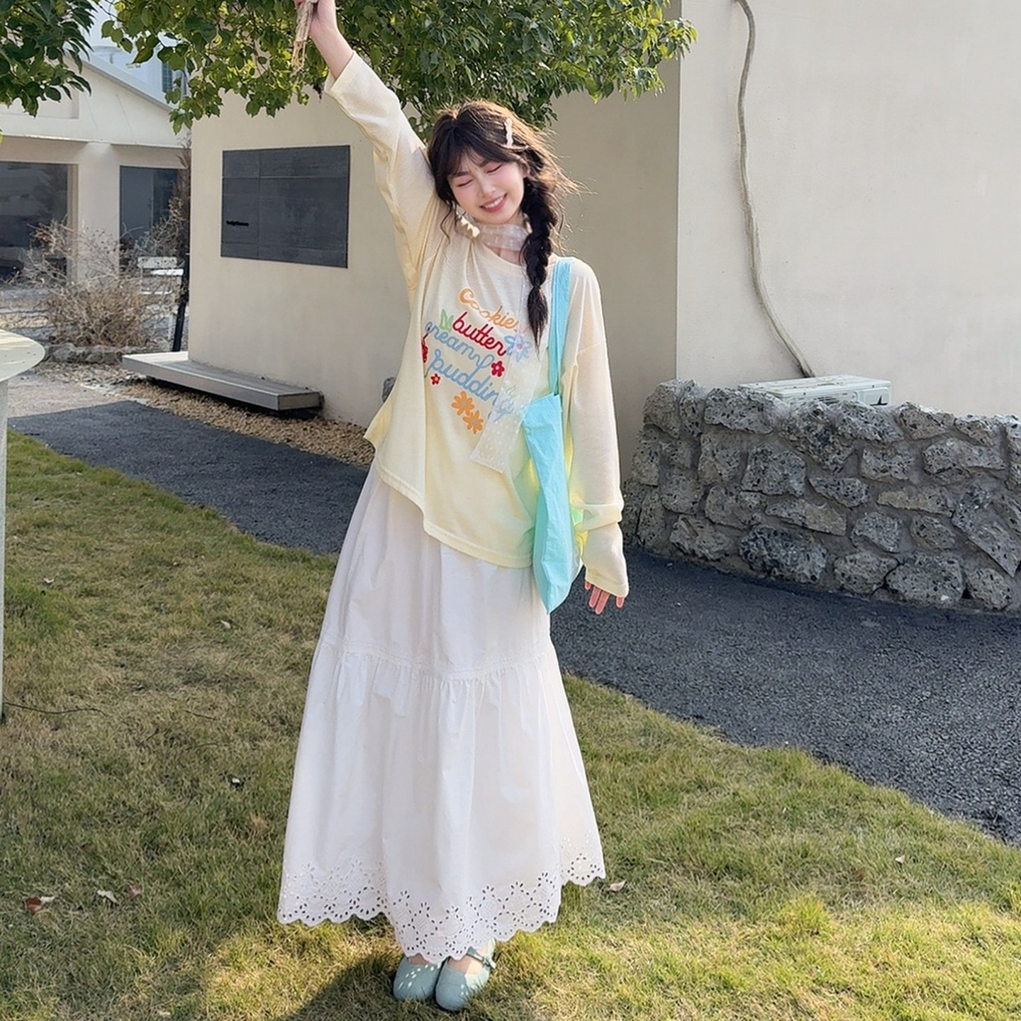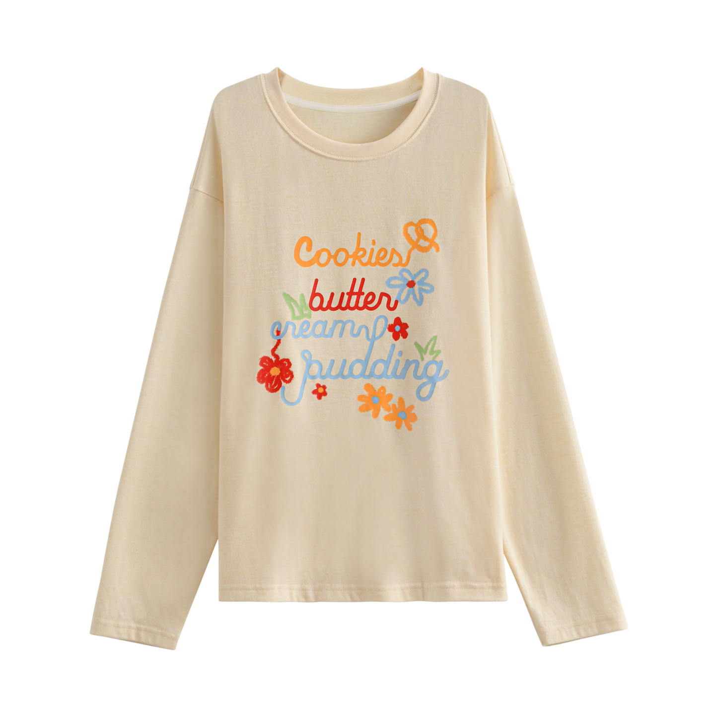 森女部落甜美风薄款圆领长袖T恤女新款宽松显瘦百搭内搭上衣春季