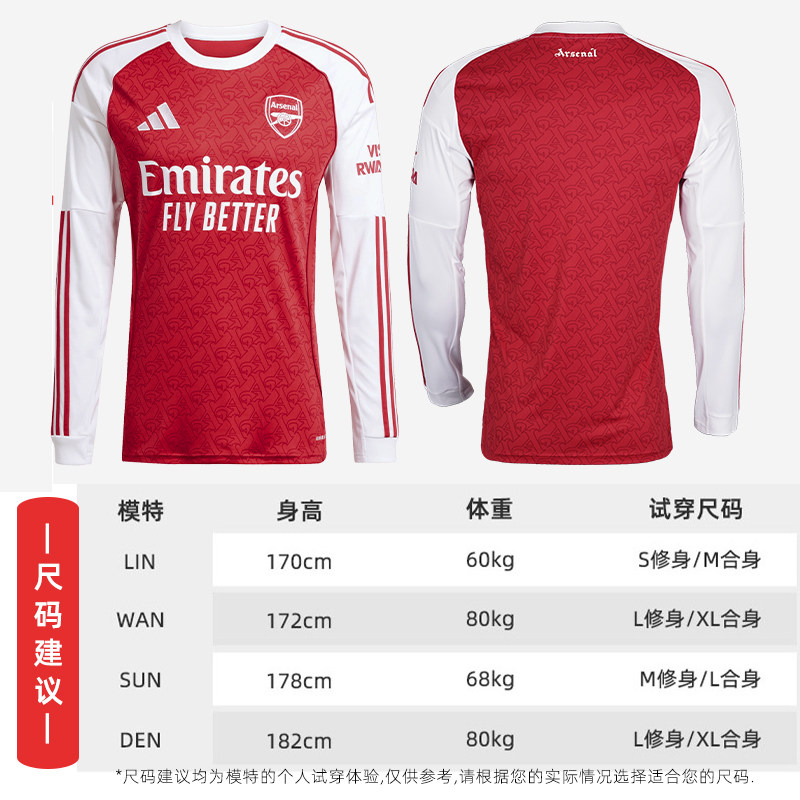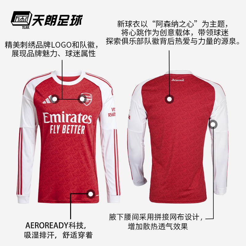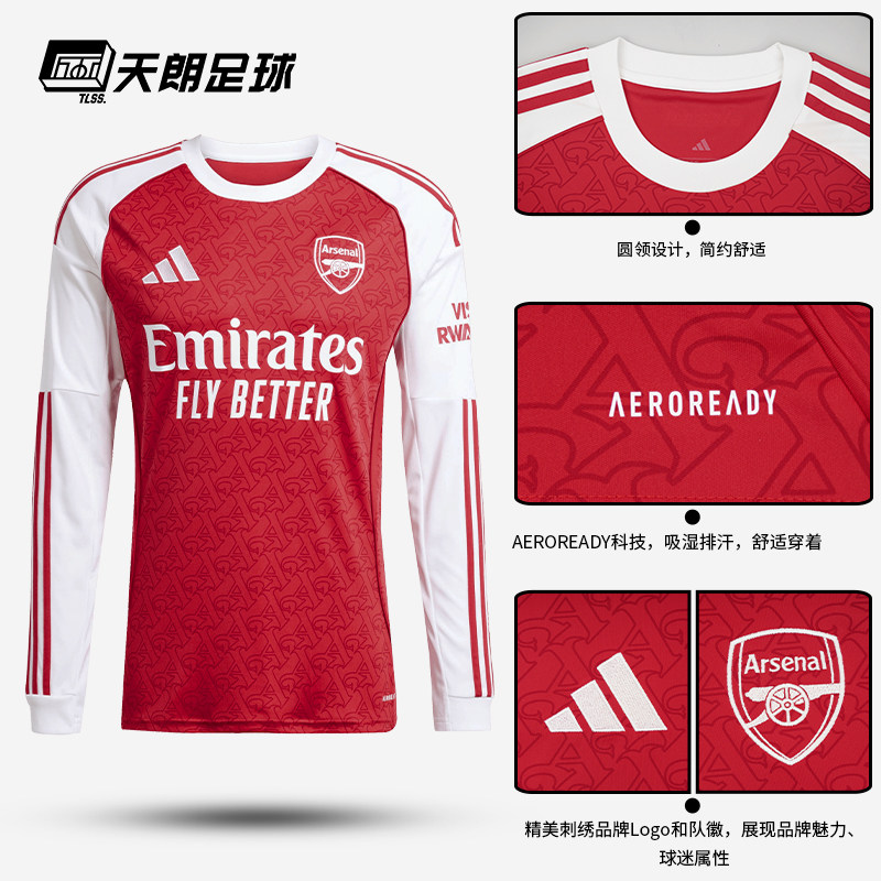 天朗足球 阿迪达斯25/26阿森纳主场球迷版球衣长袖足球服JI9536