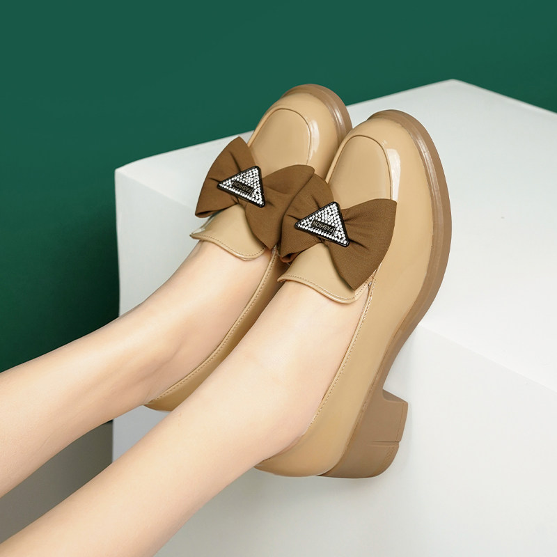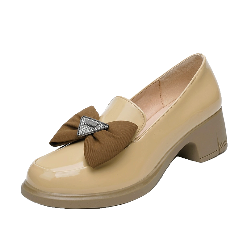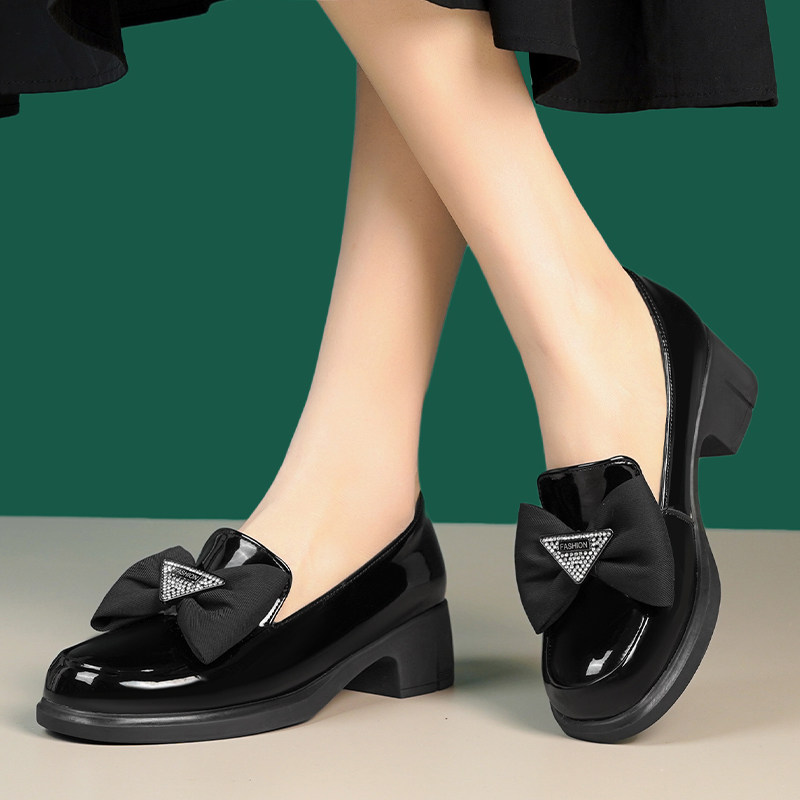 真皮蝴蝶结粗跟单鞋女2026春秋季新款漆皮乐福小皮鞋软底中跟女鞋