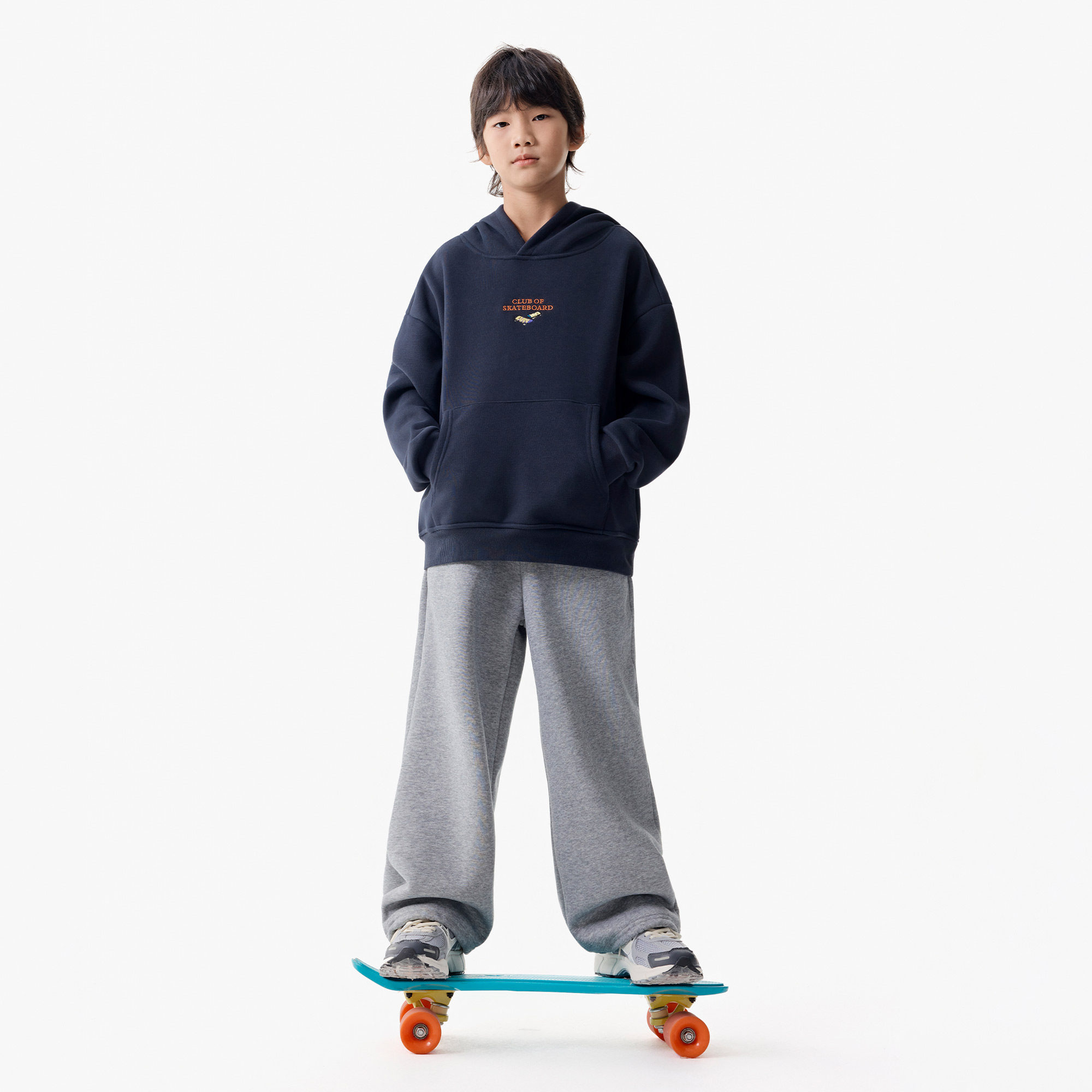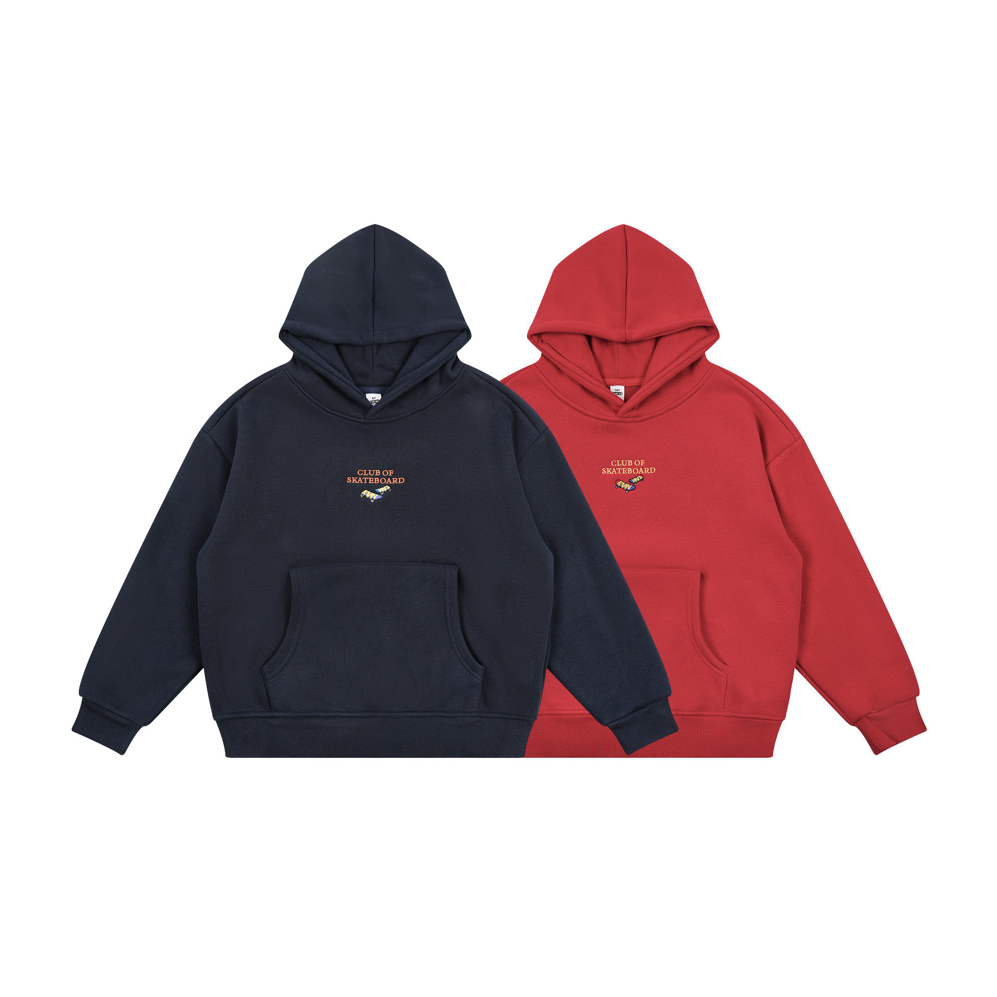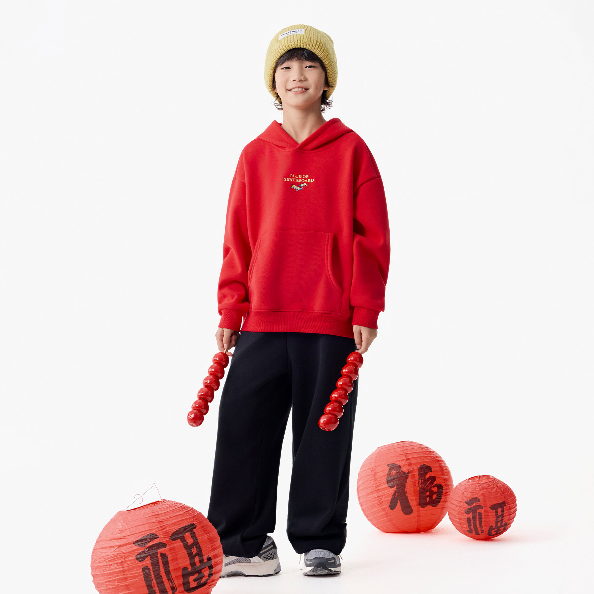 DK童装25冬季美式女男童加厚保暖加绒青少年卫衣儿童红色连帽上衣