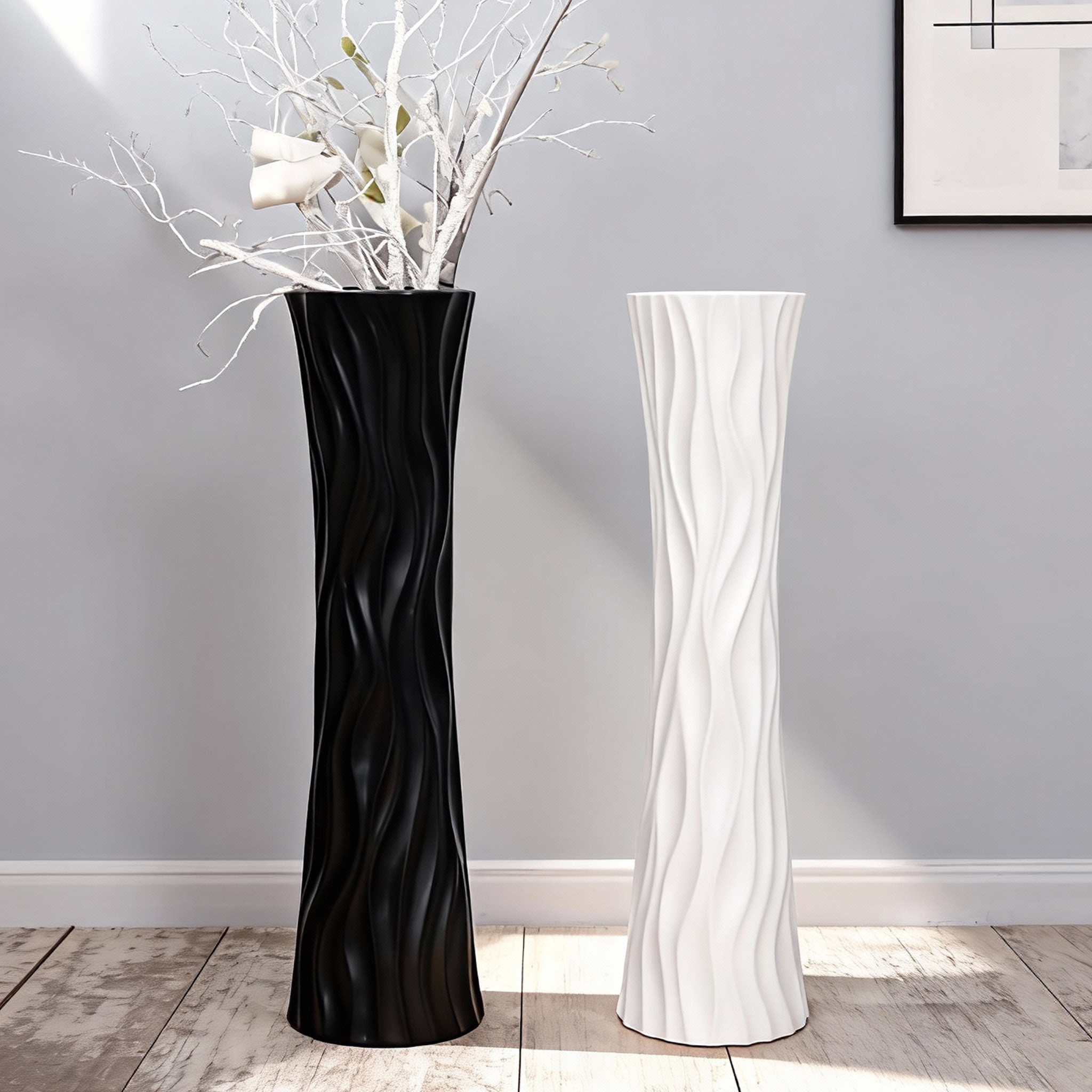 陶瓷落地白色简约时尚欧式现代花器创意客厅摆件干花绢花大花瓶