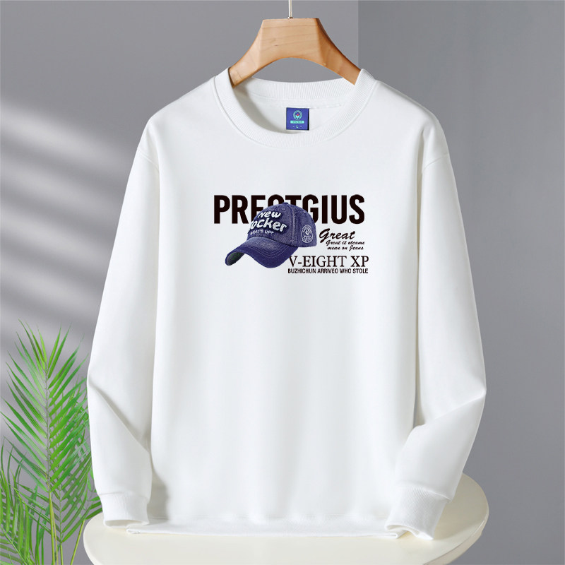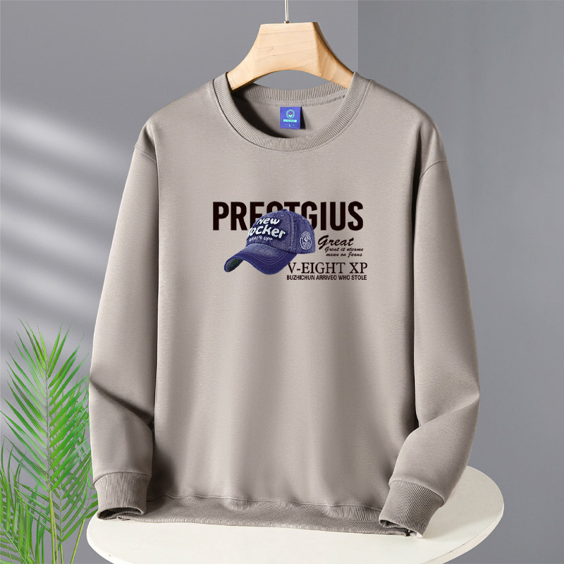 秋冬季圆领卫衣男潮牌宽松加绒加厚青少年初中高中学生内搭打底衫