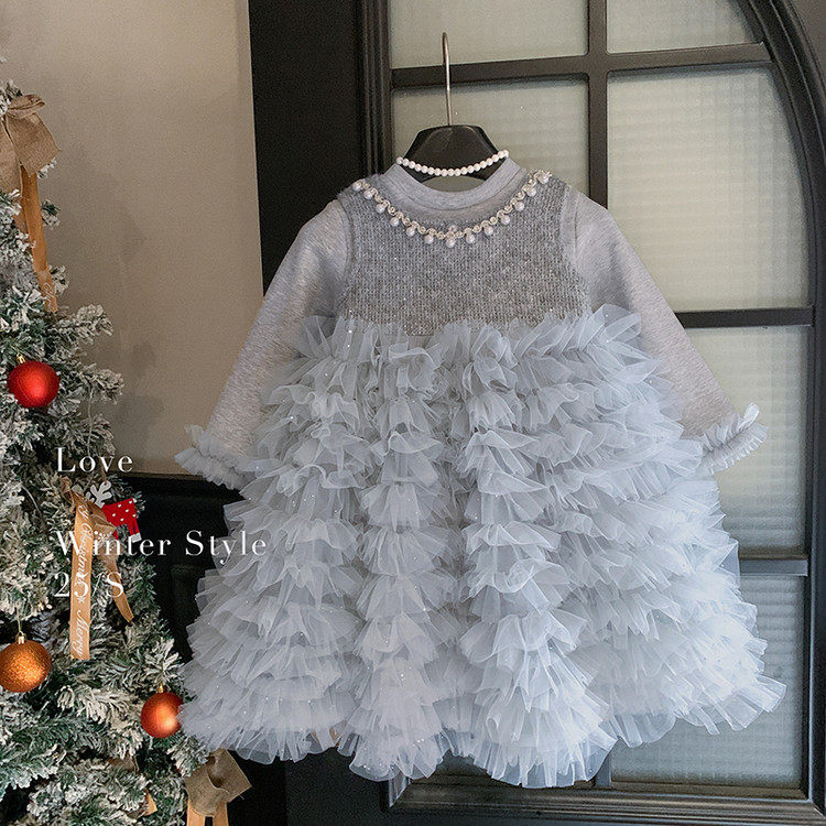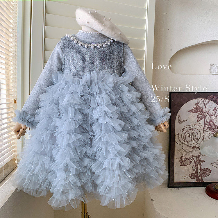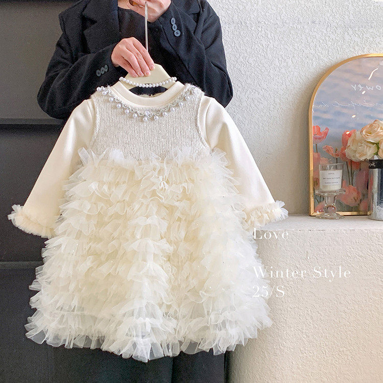 女童连衣裙套装冬款2025加绒打底无袖加绒蛋糕连衣裙两件套