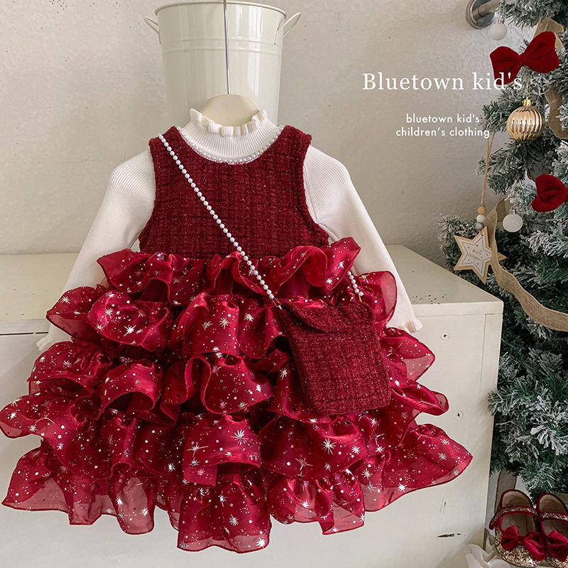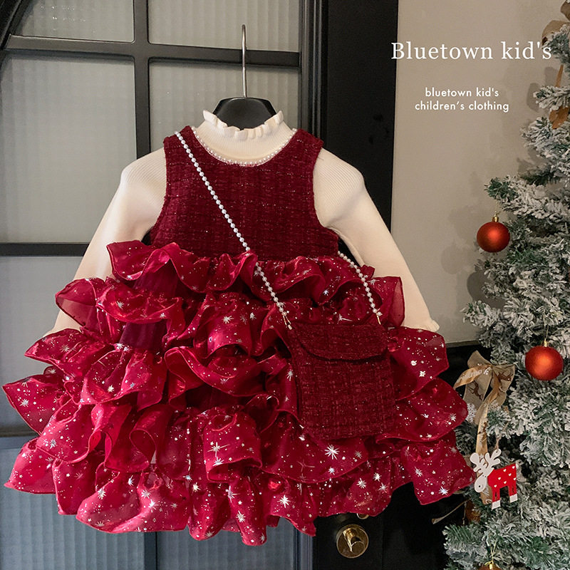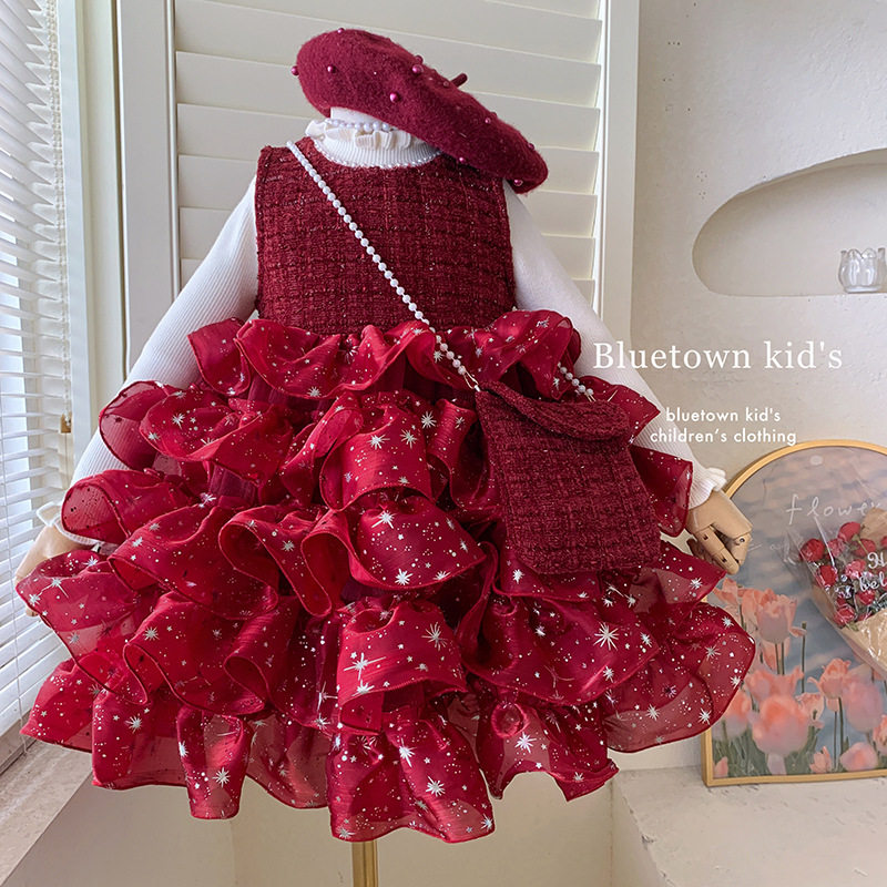 女童公主裙冬季2026新款女孩新年红色裙子洋气高级感拜年服连衣裙