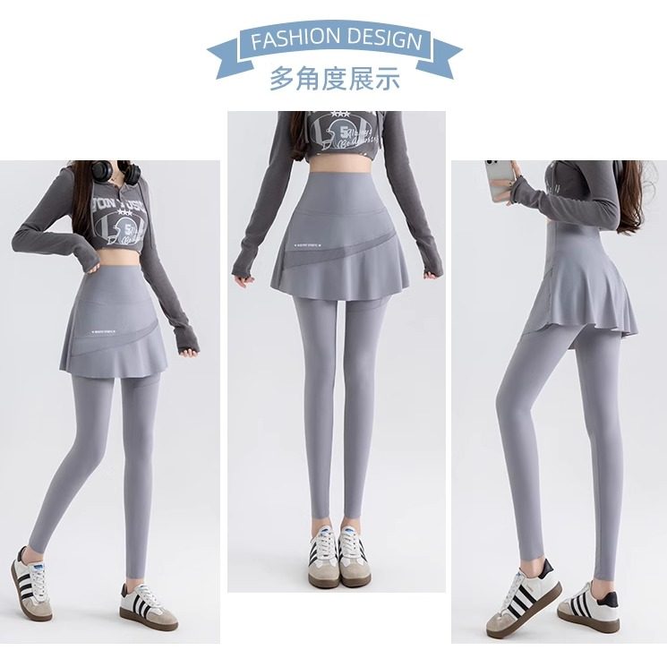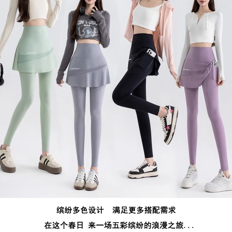 高腰假两件瑜伽打底裤裙女春秋薄款外穿气质大码显瘦运动健身裙裤