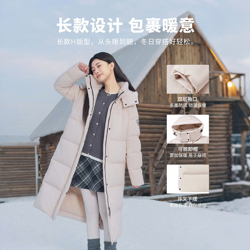 坦博尔羽绒服女款冬季中长款运动时尚加厚保暖好看可脱卸帽外套