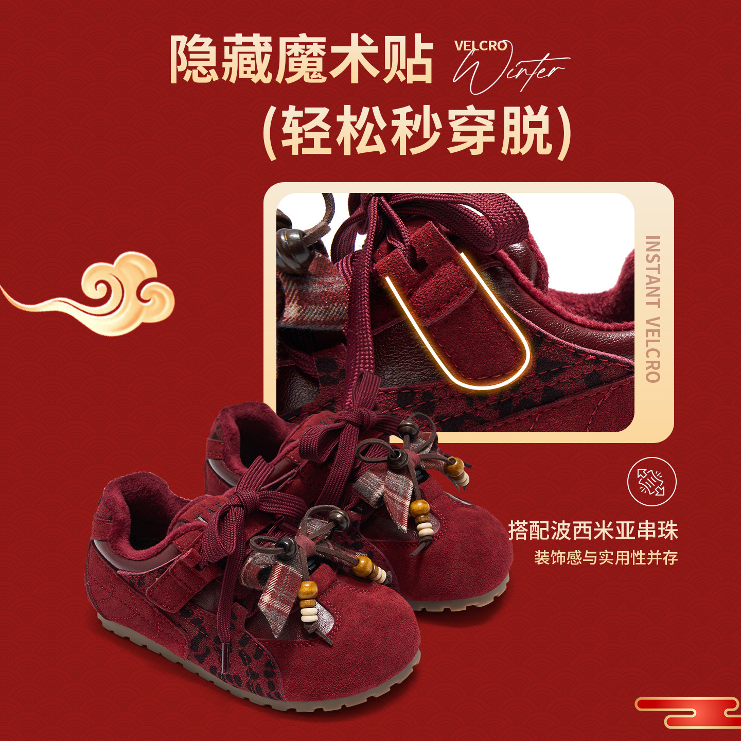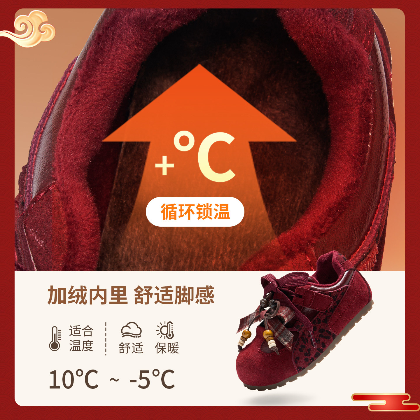 tata他她童鞋儿童运动鞋红色新年保暖休闲女童二棉鞋德训休闲板鞋