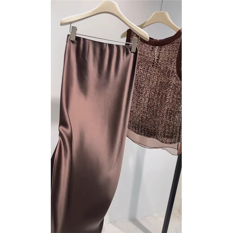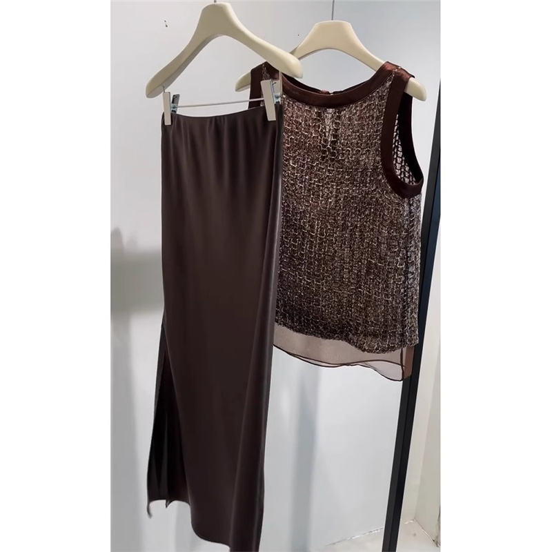 小个子一整套穿搭咖色背心醋酸连衣裙休闲两件套装女2025新款夏季