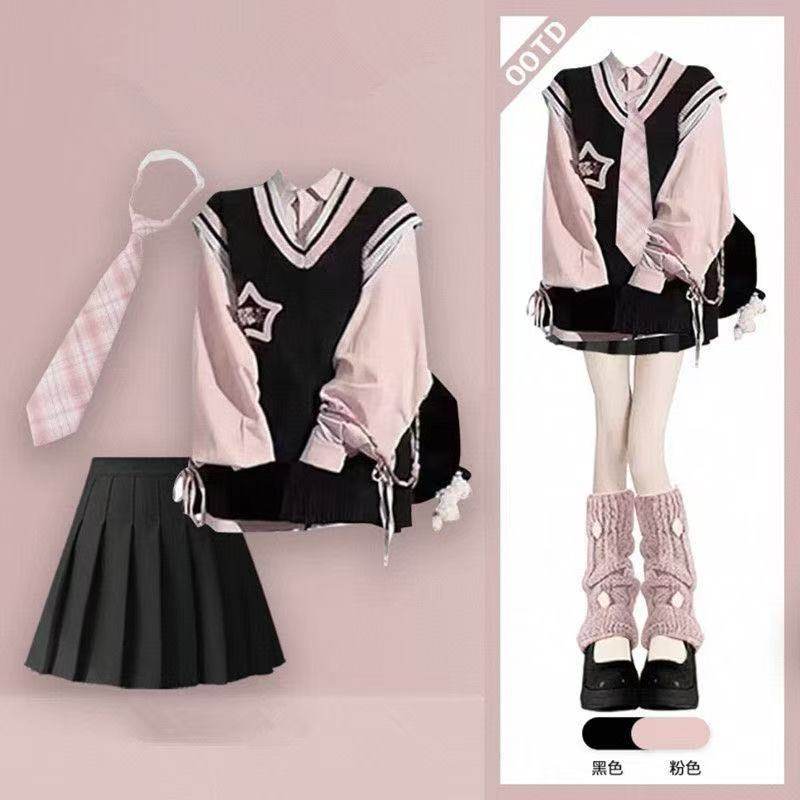 多巴胺穿搭绝美小裙春装女款2025年新款小个子学院风套装连衣裙女