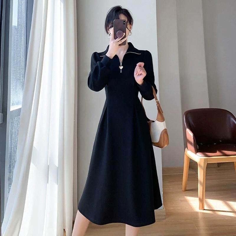 法式连衣裙女秋冬季小个子高级感气质加绒加厚配大衣内搭打底长裙