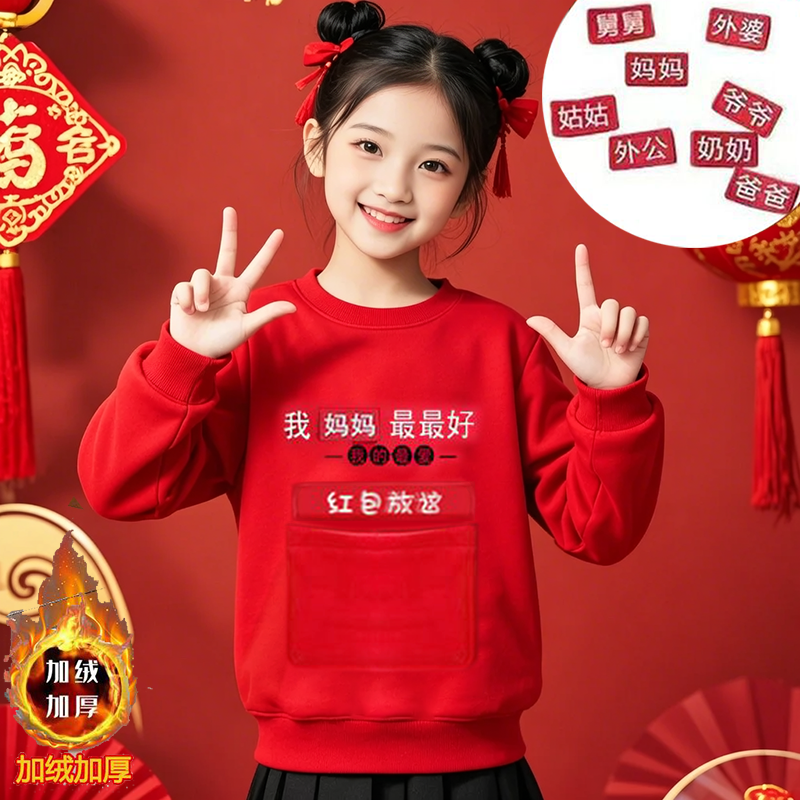 新中式童装加绒卫衣春节男童女童新年中大童拜年服儿童拜年衣服