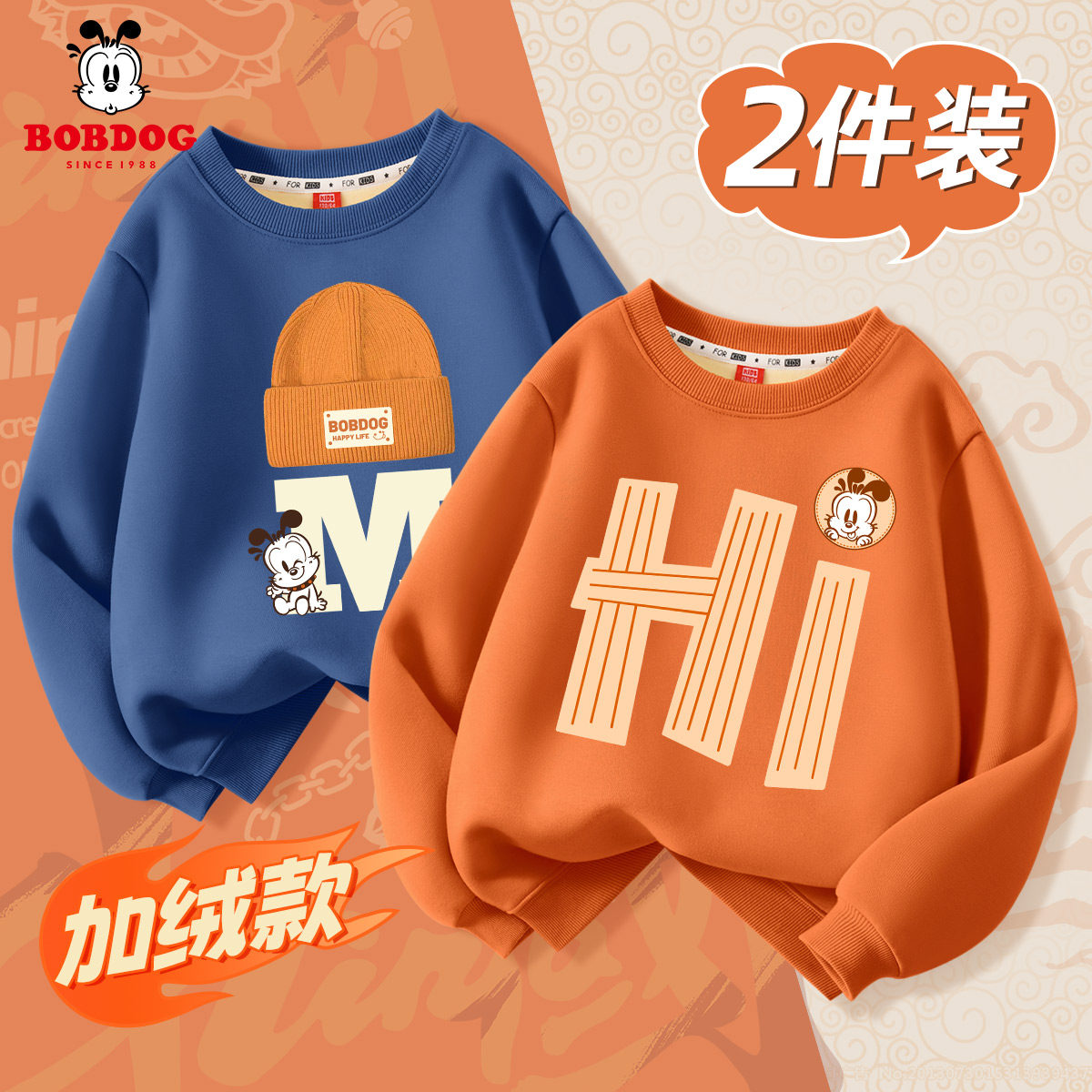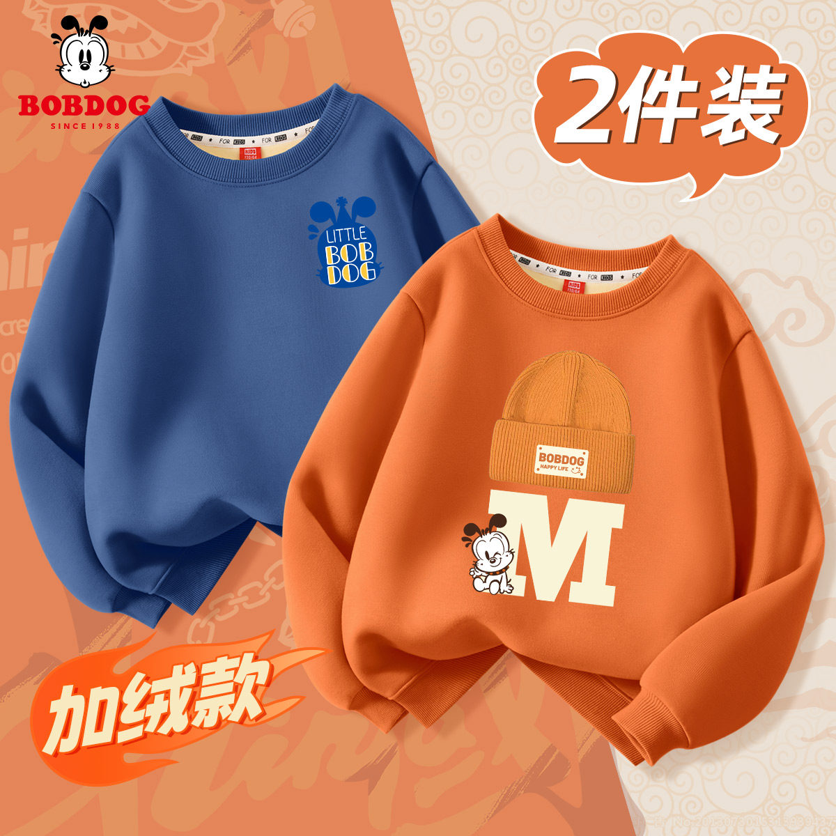 巴布豆儿童加绒卫衣秋冬一体绒冬季加厚上衣保暖男童冬装2026新款