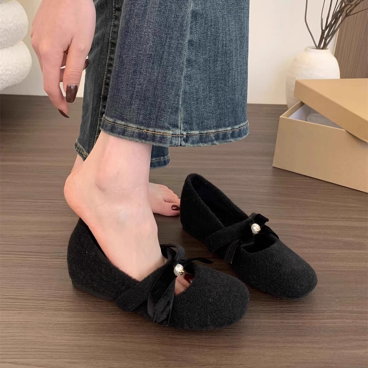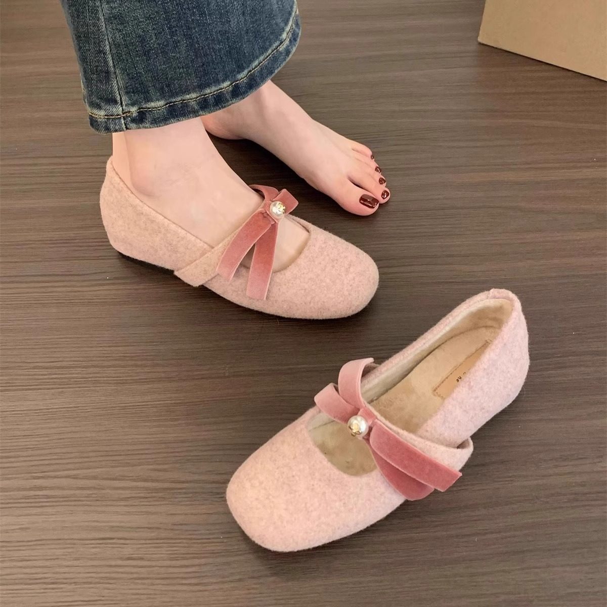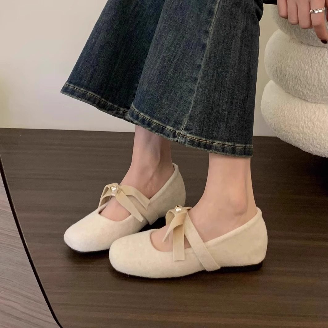 内增高粉色呢子单鞋女鞋子2025新款冬季加绒保暖法式玛丽珍毛毛鞋