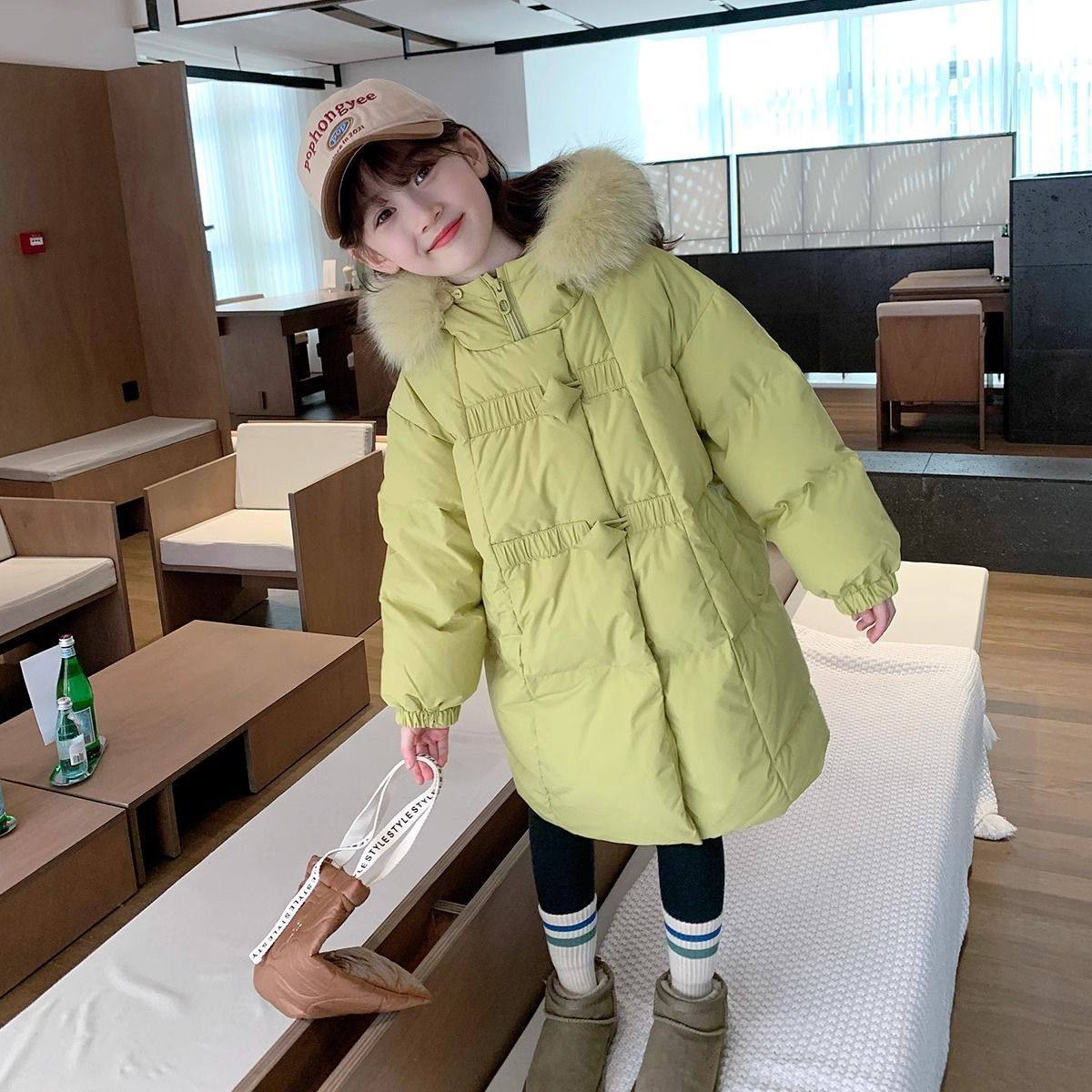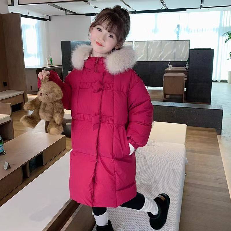 女童羽绒棉服中长款过膝棉衣2025新款冬季加厚外套中大童初中生
