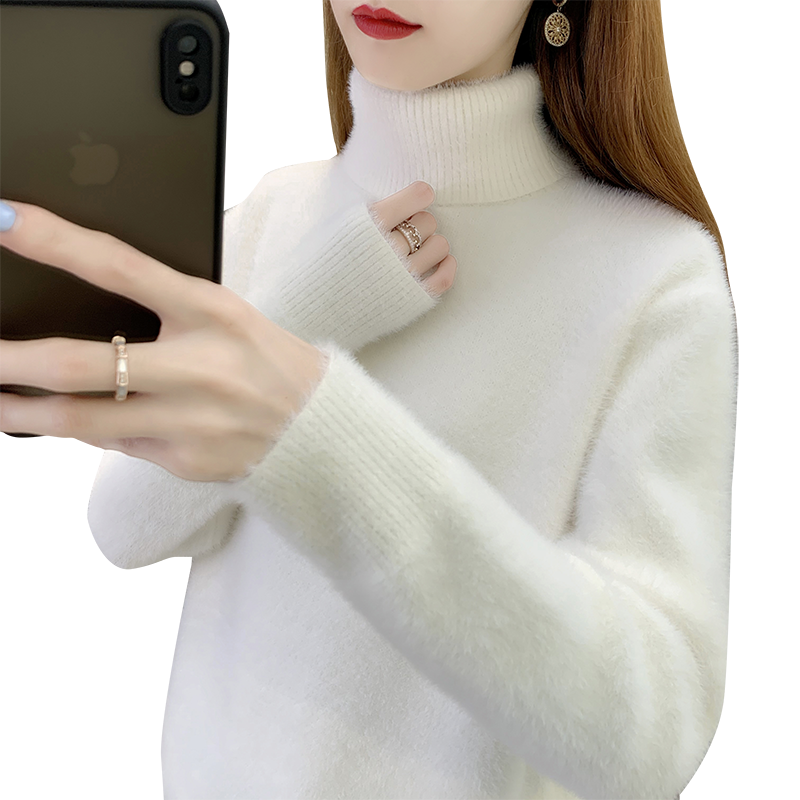 毛衣女款2025新款冬季水貂绒针织上衣内搭加绒加厚高领打底衫女冬