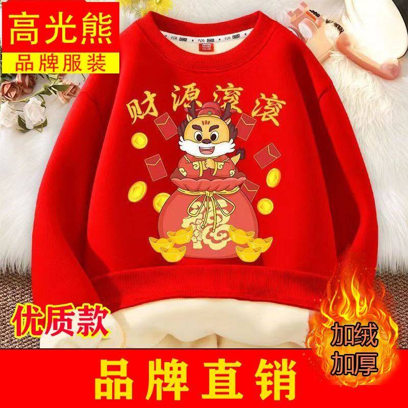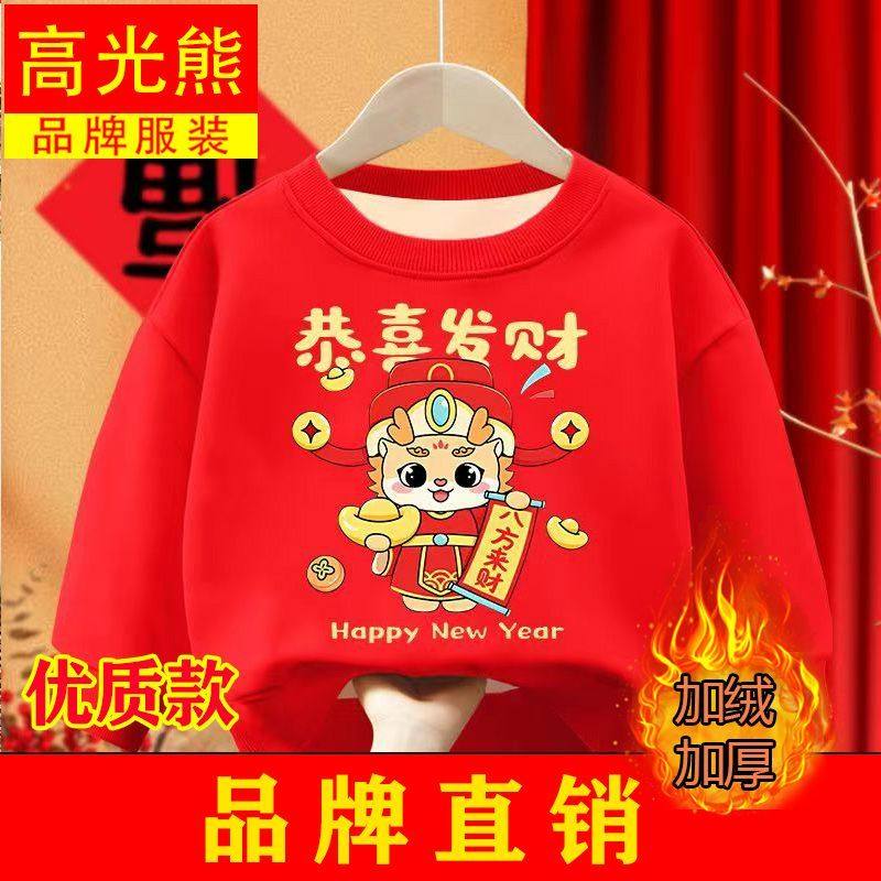 儿童拜年卫衣新年加绒加厚男童过年衣服龙年红色本命年上衣女童