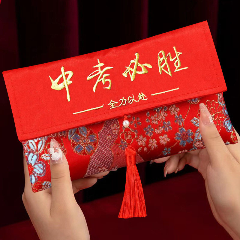 2026中考必胜布艺红包袋金榜题名高考必胜万元布艺刺绣创意红包袋